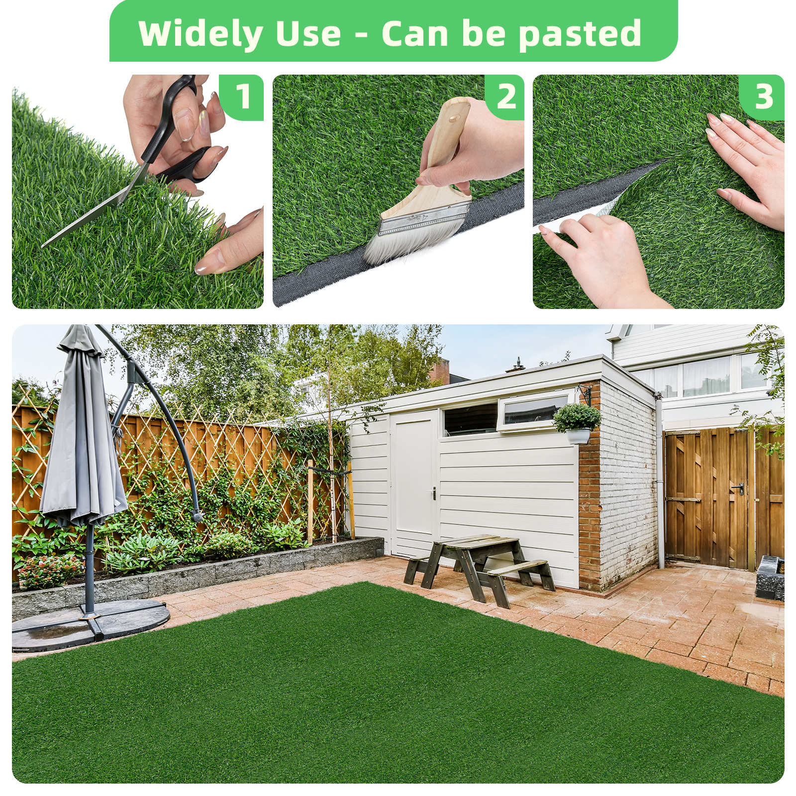 Lemmikkialueet, pihat, pientareet, puutarhat, terassit, parvekkeet, kattotasanteet, uima-allasalueet, tapahtumat, koulut ja puistot. Soveltuu myös lavasteeksi teatteriin tai kuvauksiin, sekä sisustukseen ja vihreyttä kaipaaviin tiloihin. Voidaan käyttää asuin-, teollisuus- ja liikekohteissa sekä sisällä että ulkona.