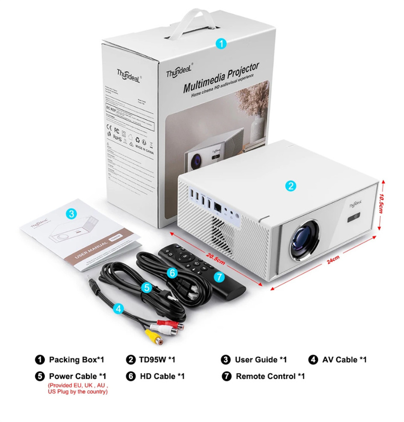 - Terävä 1920*1080P-kuva ja tuki 2K/4K-syötteellePakkauksen sisältö: