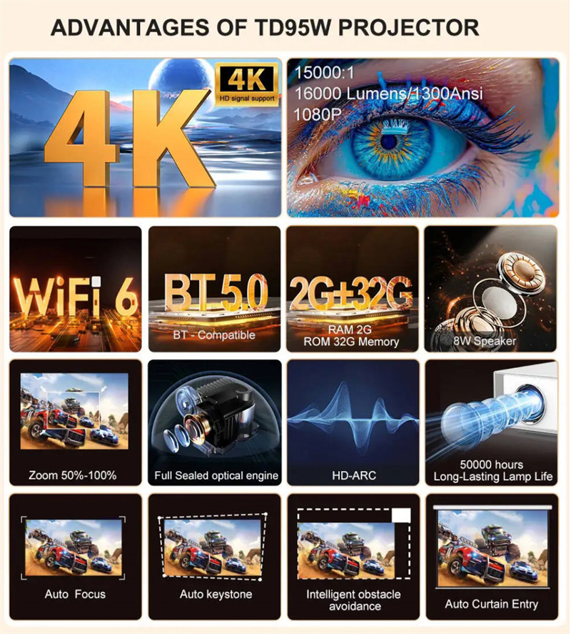 1. Todellinen alkuperäinen resoluutio 1920*1080P Full HD, resoluutio tukee 2K 4K HD-signaalista, tukee HD ARCKeskeiset edut: