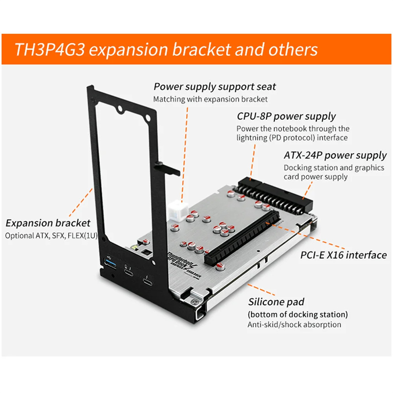 Thunderbolt3/4 ulkoinen näytönohjaintelakka kannettavalle 40 Gbps PD85W ATX-tuki
