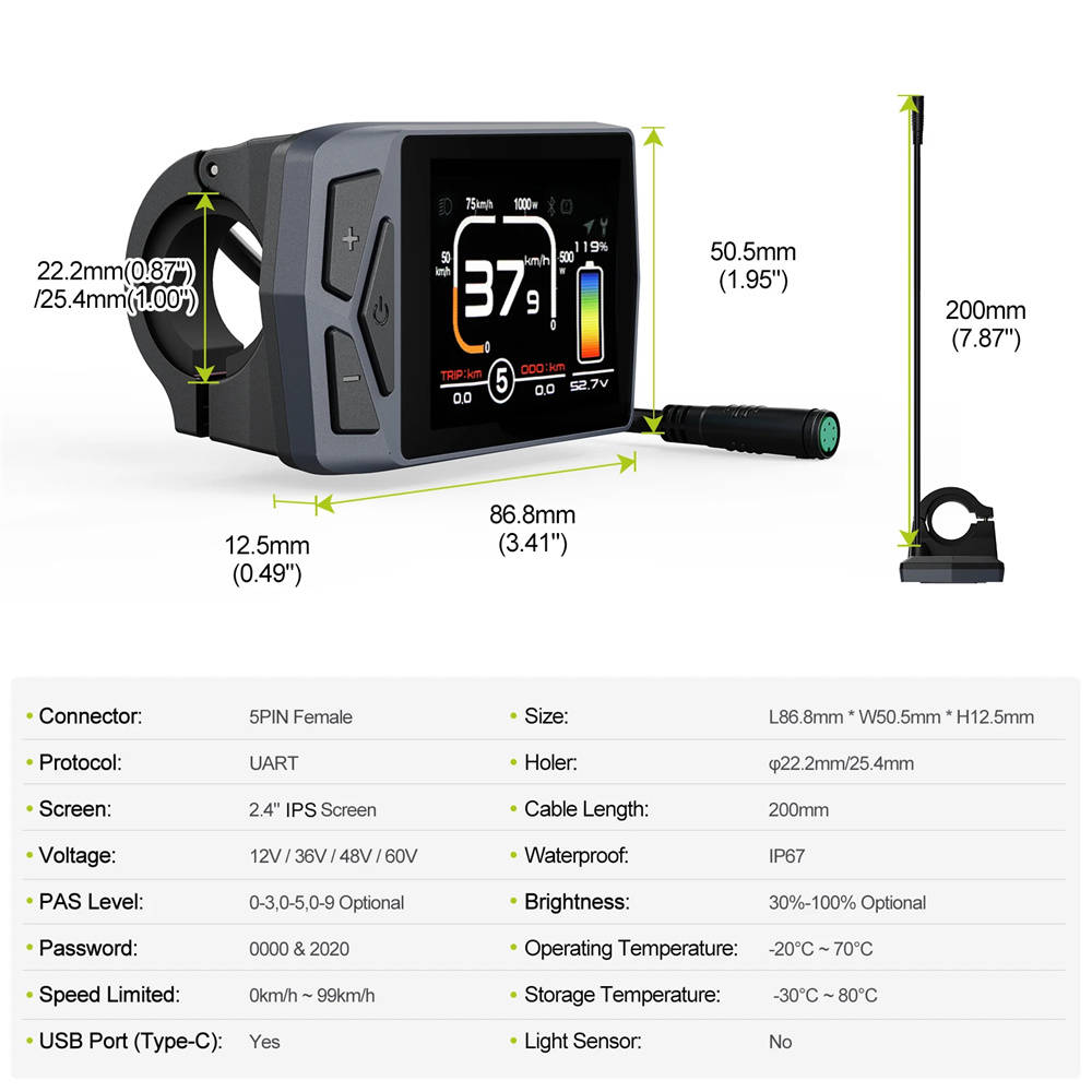 - EKD01 IPS-värinäyttö, 2.4' koko ja jopa 9 valittavaa avustustasoa