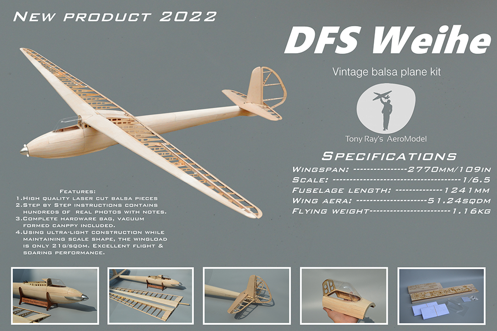 Tony Ray's Aero Model DFS Weihe on 1/6.5-mittakaavassa oleva balsapuinen liidokin rakennussarja pitkällä 109 in / 2770mm siipivälillä. Kevyt rakenne ja suuri siipipinta-ala tekevät siitä hyvin liitävän ja herkästi ohjautuvan mallin kokeneemmalle harrastajalle, joka haluaa rakentaa rungon itse.