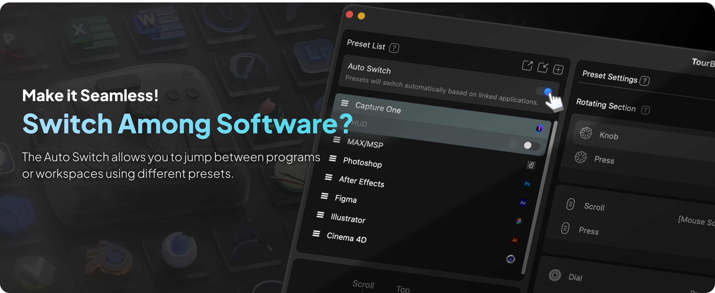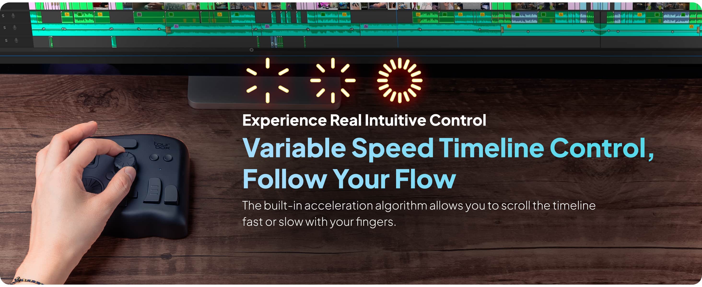 TourBox Elite on Bluetooth-ohjain, joka nopeuttaa ja sujuvoittaa luovaa työnkulkua videon editoinnissa ja värimäärittelyssä, valokuvien jälkikäsittelyssä sekä piirtämisessä. Tuntopalautteella varustetut säätimet tarjoavat tarkan ja intuitiivisen ohjauksen aikajanaan, sävyihin ja työkaluihin.