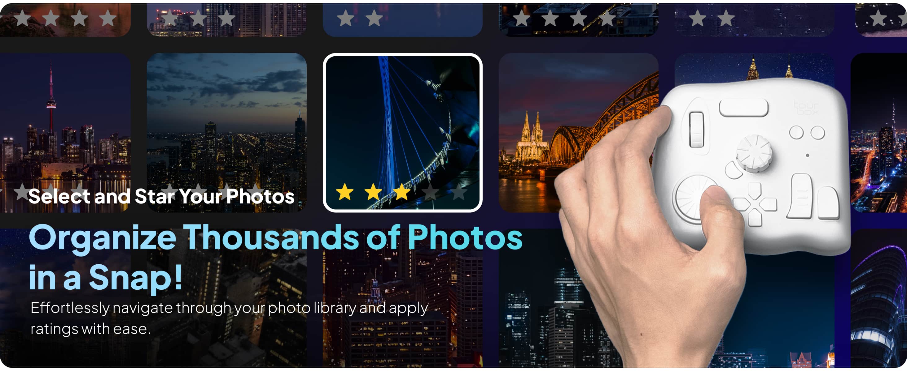 4. Valokuvien jälkikäsittely: tehokas ohjaus kuvavalinnasta paikallisiin säätöihin ja värien hienosäätöön, rulla helpottaa valintaa, nupit tarjoavat tarkan värikontrollin.