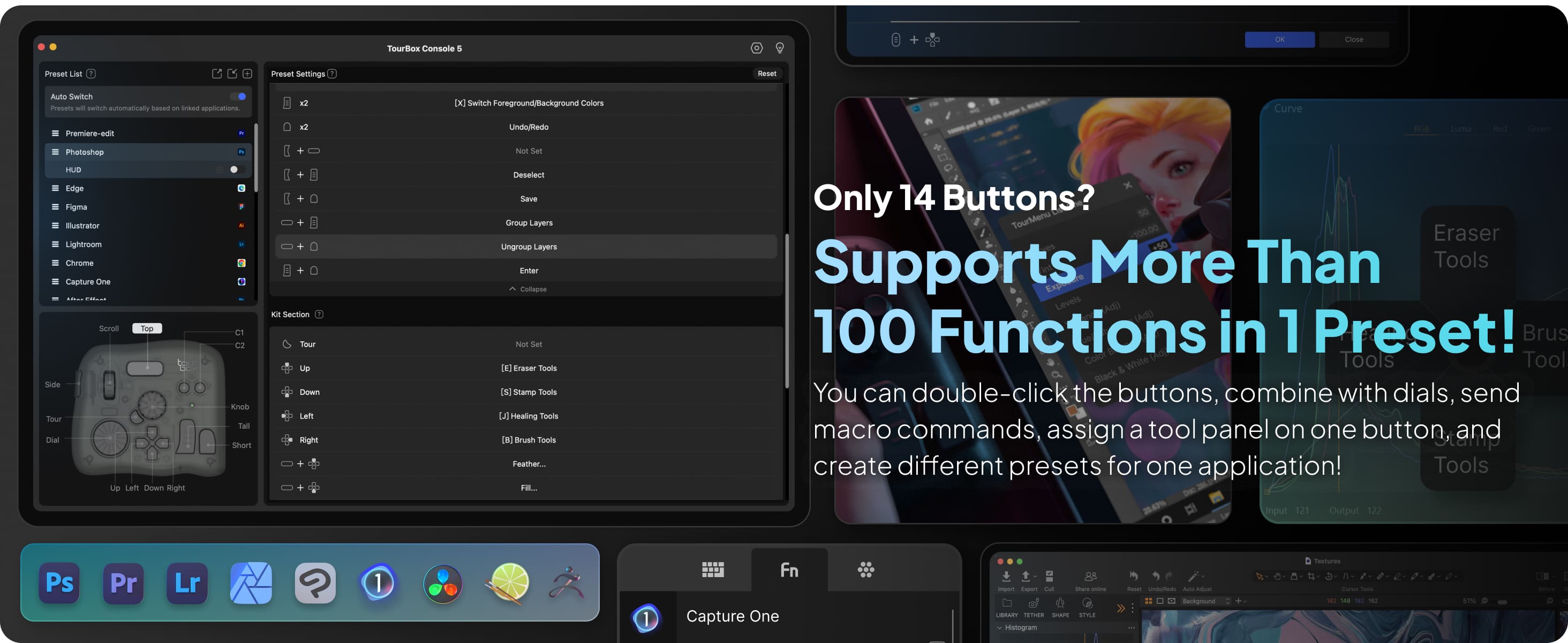 TourBox Elite Bluetooth-yhteydellä ohjain valokuvien ja videoiden editointiin värimäärittelyyn ja piirtämiseen