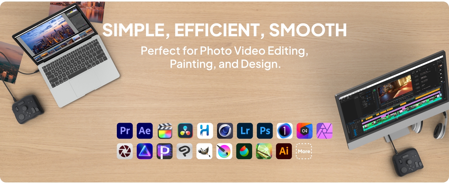 - Monipuolinen luovan työn ohjain: tehostaa piirtämistä, valokuvien retusointia ja värinkorjausta sekä videoeditointia värimäärittelyineen. Yksinkertaistaa työnkulun ja tekee siitä sujuvamman.