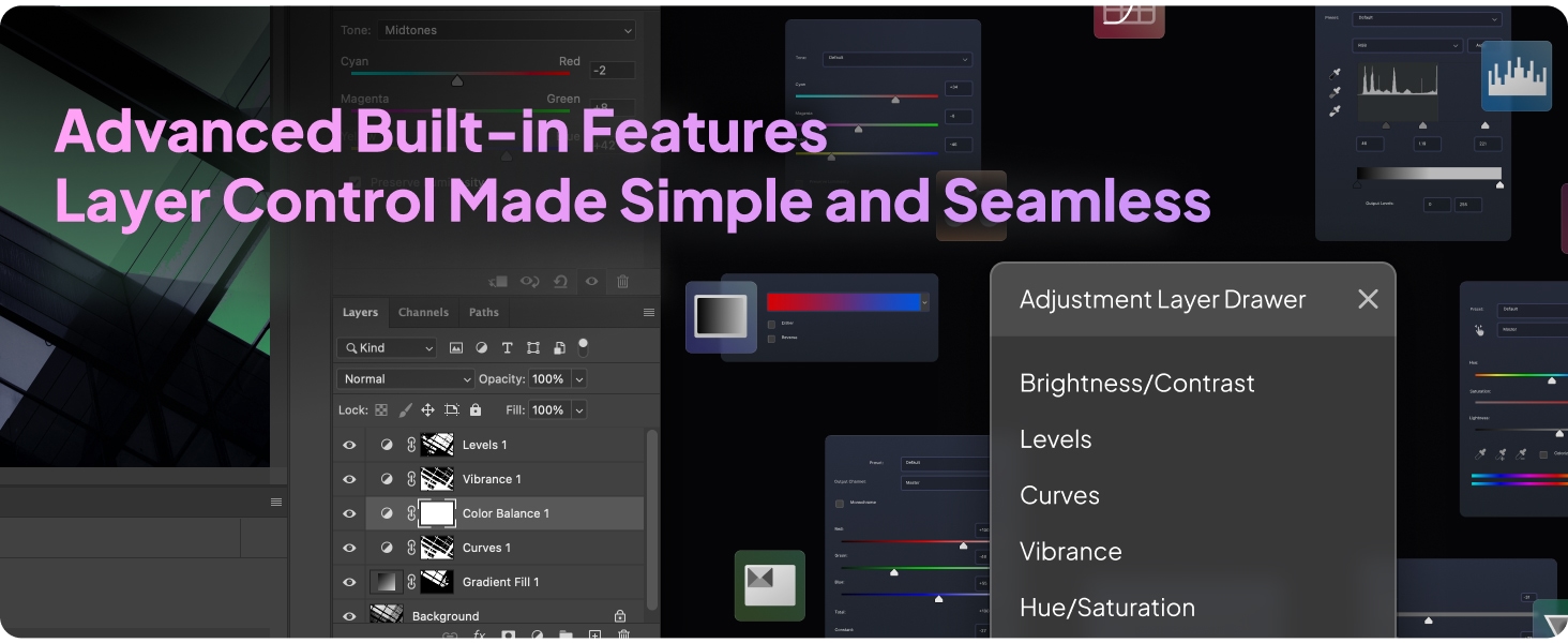 - Valokuvauksen jälkikäsittely: ainutlaatuinen painikelayout ja päivitetty näyttövalikko helpottavat kuvavalintaa, värinkorjausta, paikallisia säätöjä ja uudelleenkäsittelyä. Rulla nopeuttaa valintaa ja nupit tarjoavat tarkan värisäädön.