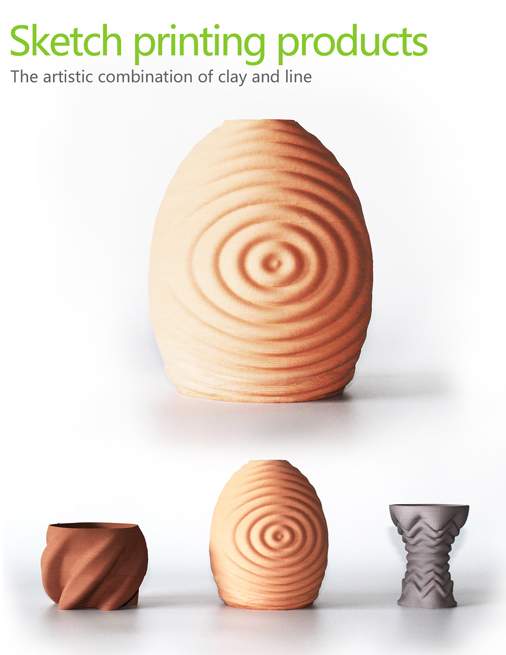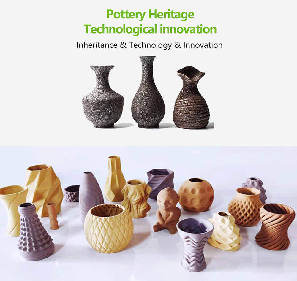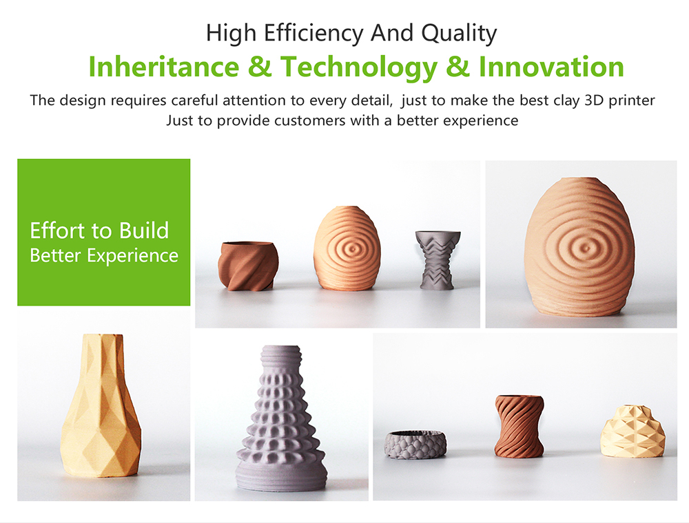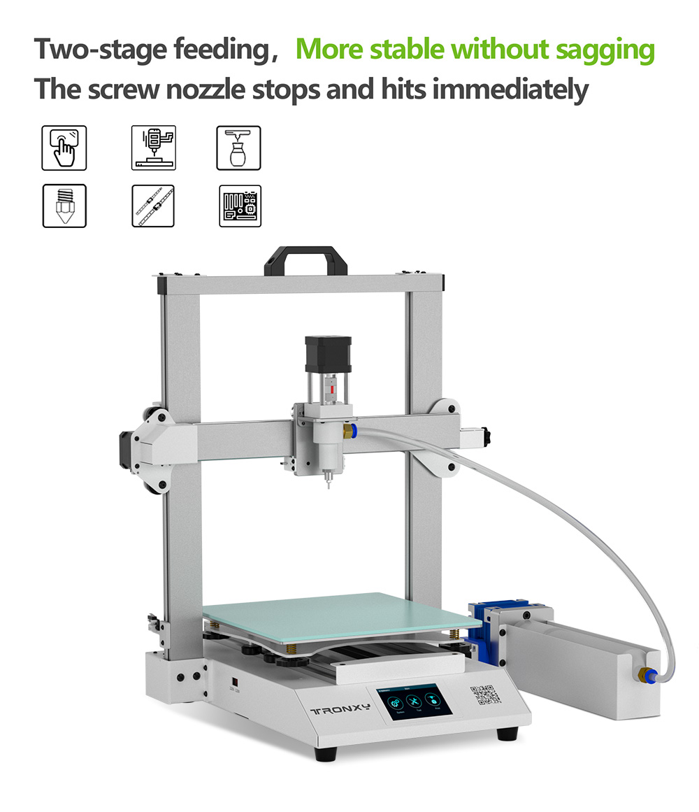 Sähköinen työntömekanismi korvaa paineilman ja parantaa tulostuslaatua sekä -vakautta. Soveltuu savelle, keraamiselle lietteelle, punaiselle posliinille ja erilaisille juokseville materiaaleille.