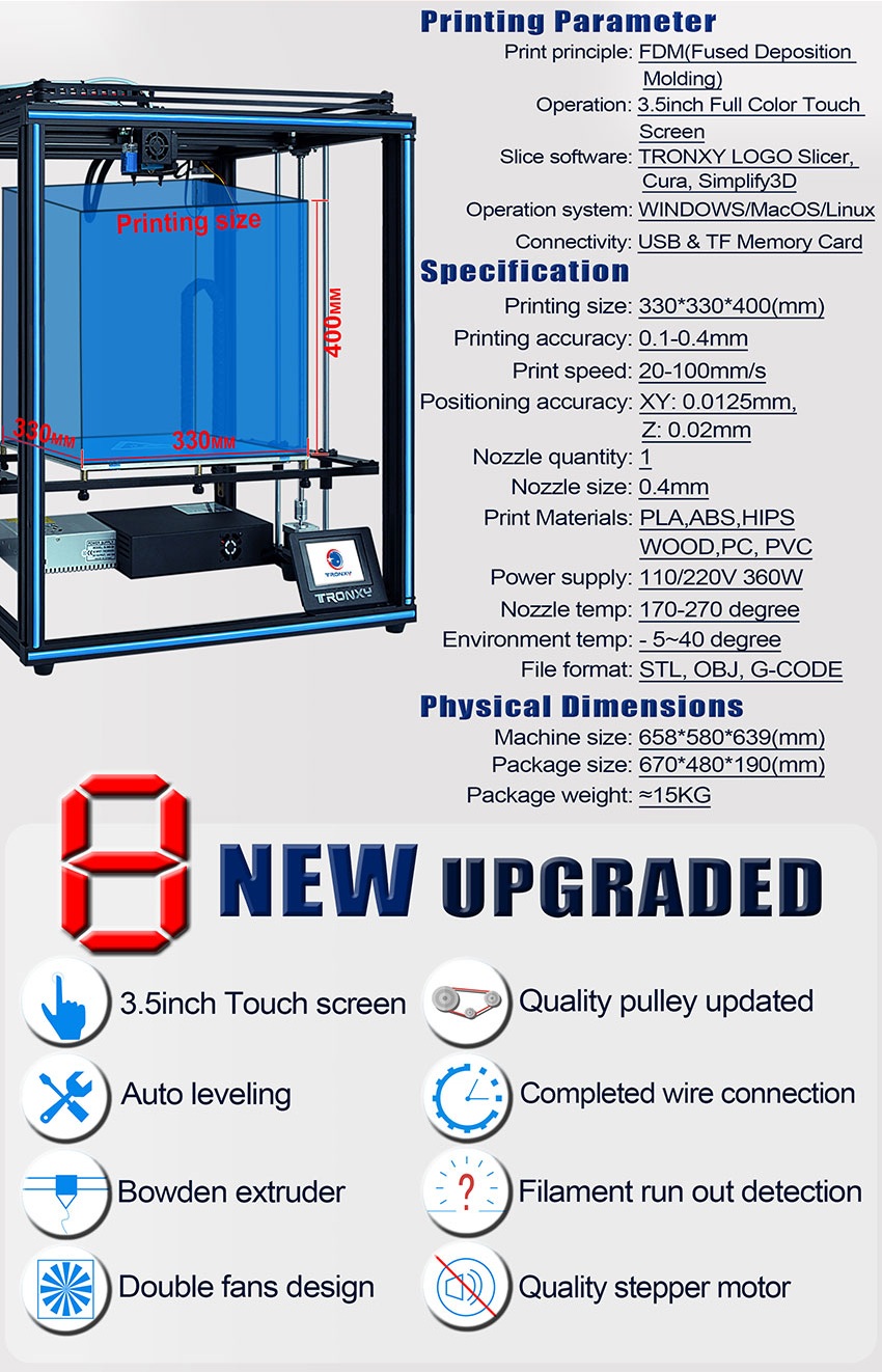 - Suuri rakennusalue: maksimitulostuskoko 330*330*400mm