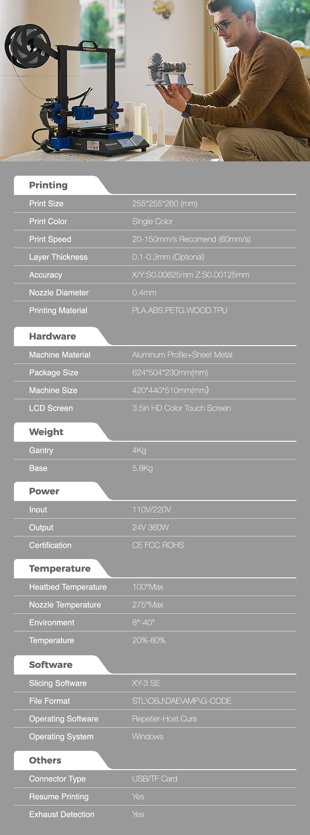 Tulostuskoko: 255*255*260 mm