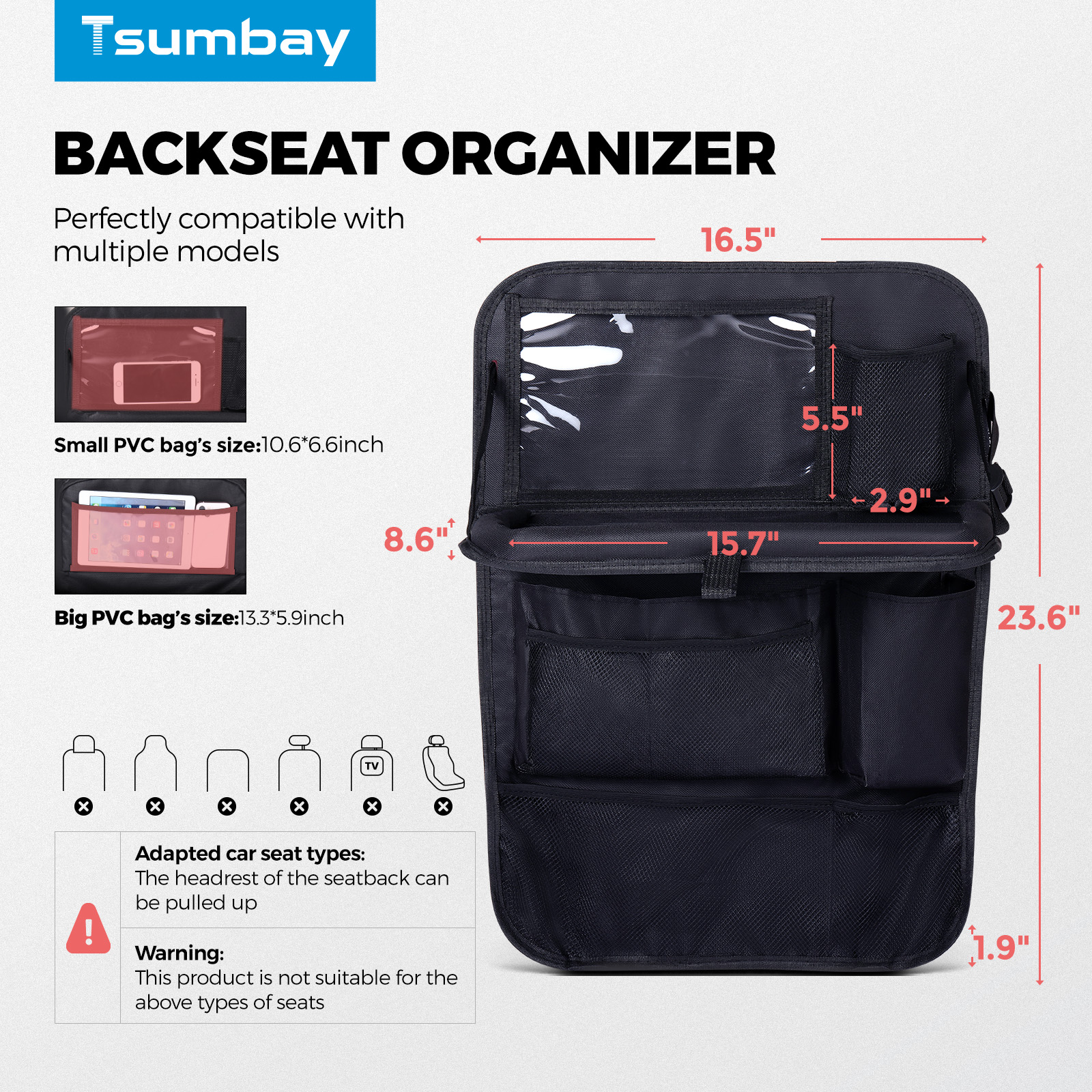 Tsumbay kaksi taitettavaa auton selkänojan säilytyslaukkua taskuilla ja tarjottimella