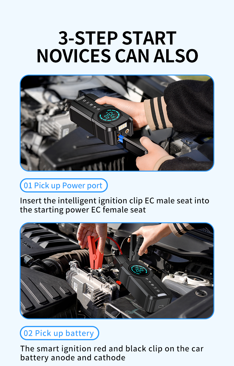 POPDEER PD-J03 kannettava auton hätäkäynnistin 3000A varavirtapankki taskulamppu turvasuojilla SOS