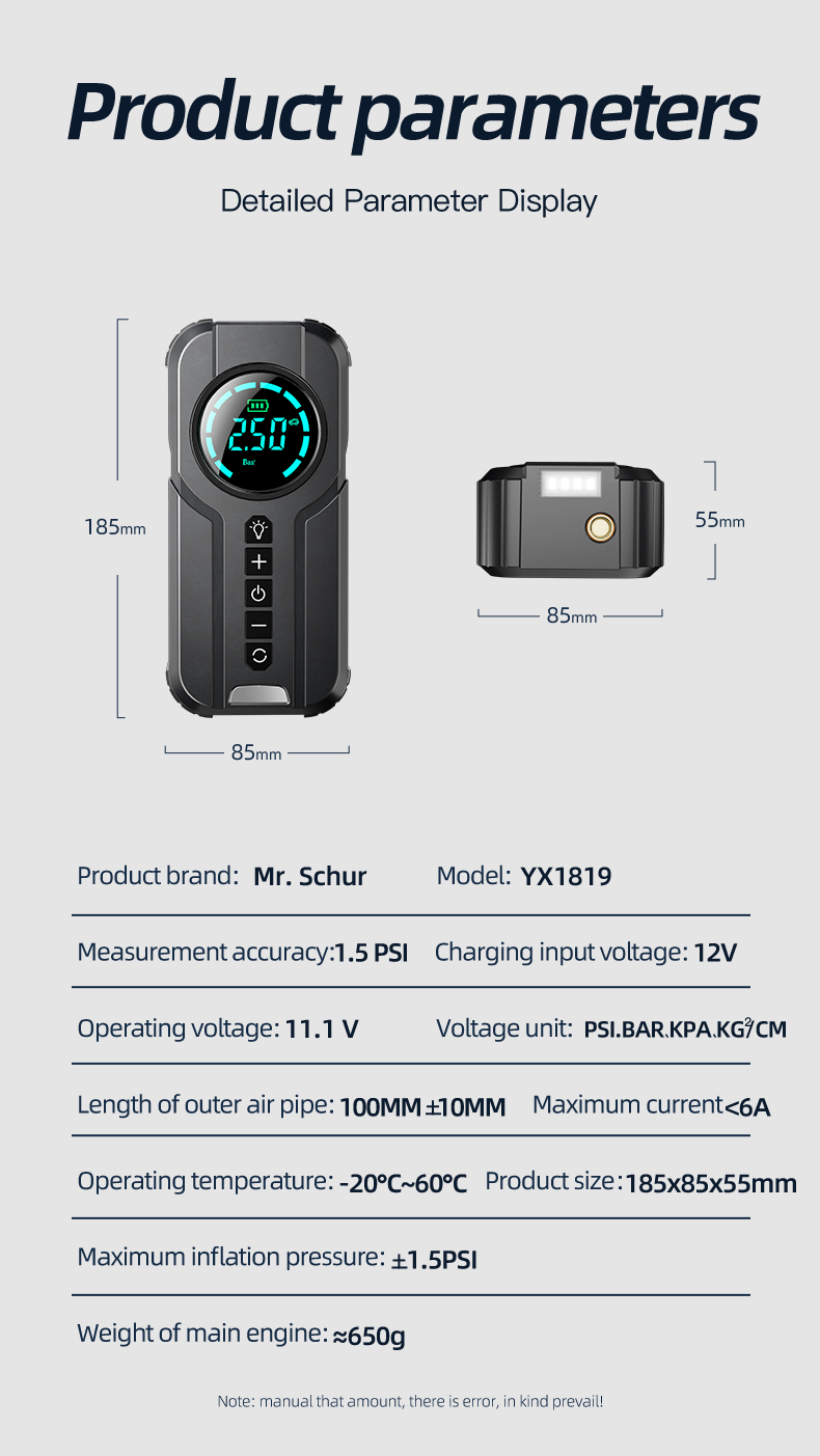 TUERBB T-AP01 langaton ilmapumppu 150psi minikokoinen kannettava auton hätävirtapankki HD-näyttö