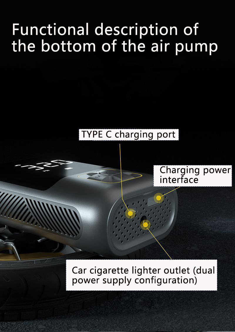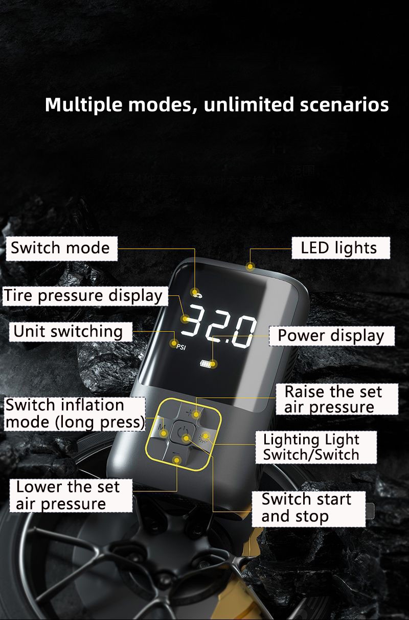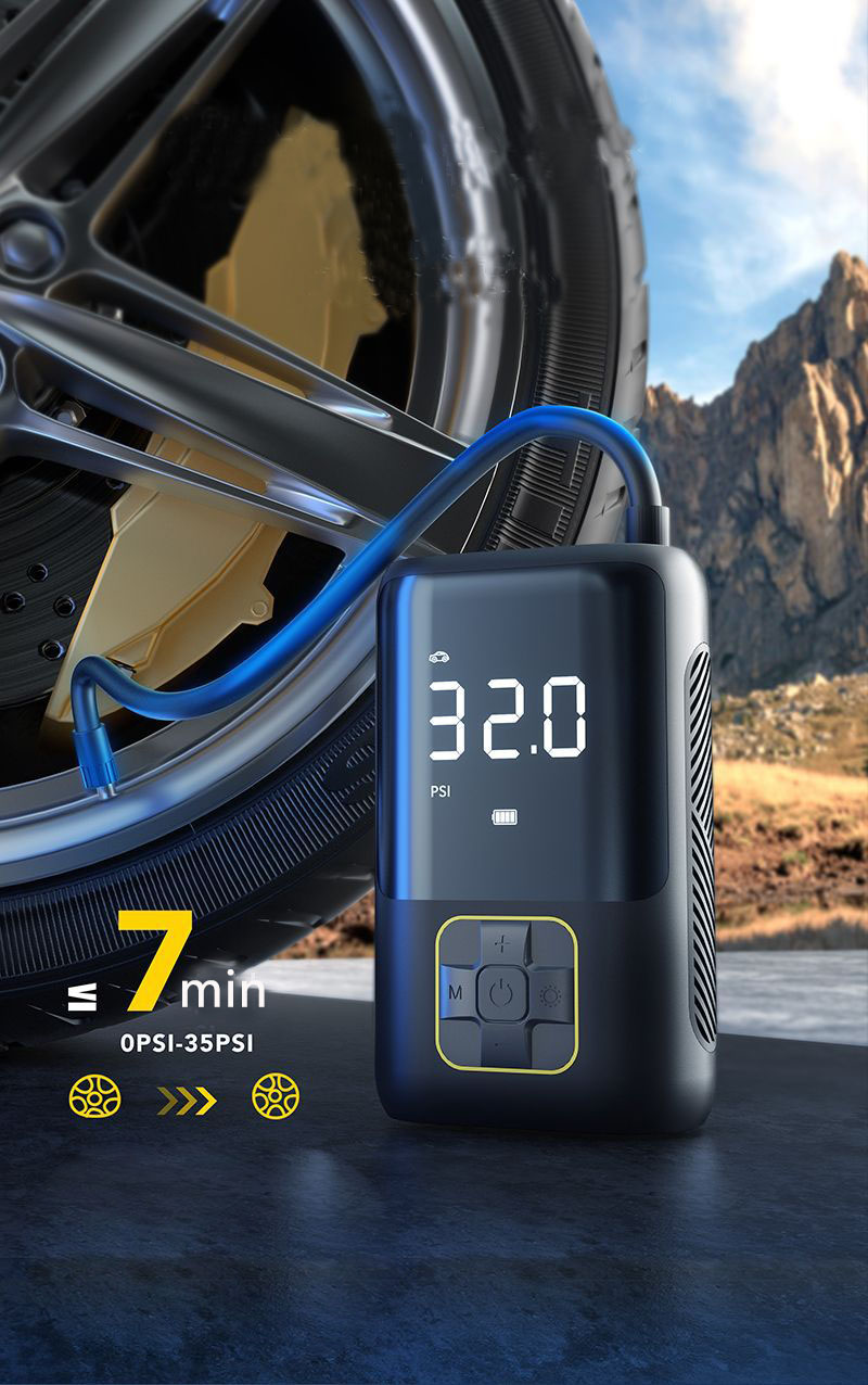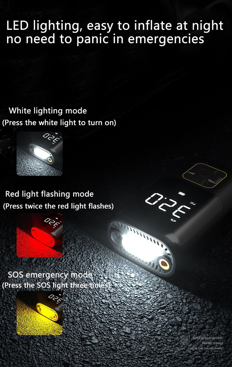 Monikäyttöinen TUERBB Car Air Compressor on kompakti ja helposti mukana kulkeva kompressori renkaiden ja erilaisten varusteiden nopeaan täyttöön. Digitaalinen näyttö, useat yksiköt ja neljä ennalta asetettua tilaa helpottavat käyttöä arjessa ja hätätilanteissa.