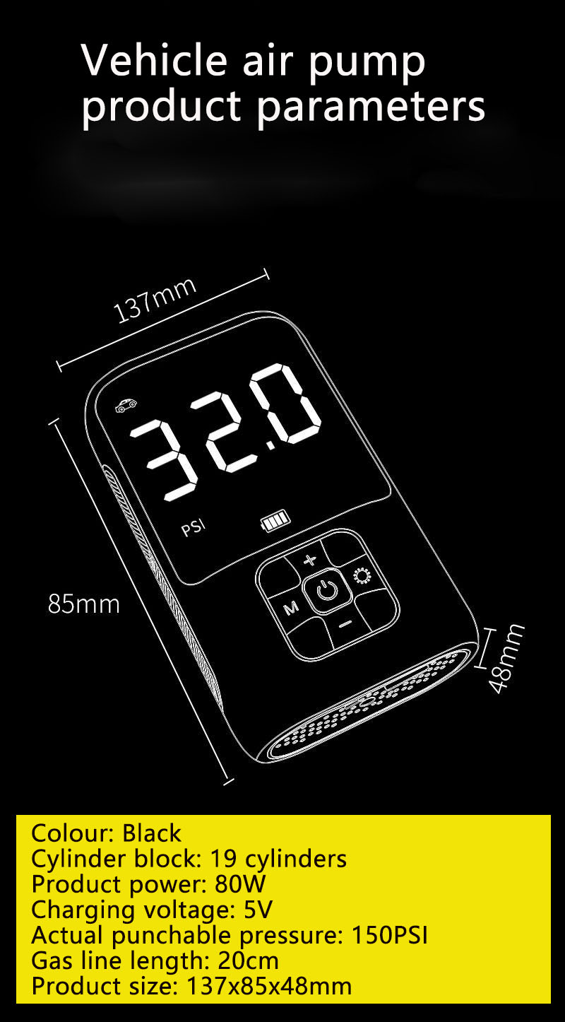 TUERBB T-AP71 kannettava langaton ilmakompressori 150PSI digitaalinen näyttö nopea renkaiden täyttö