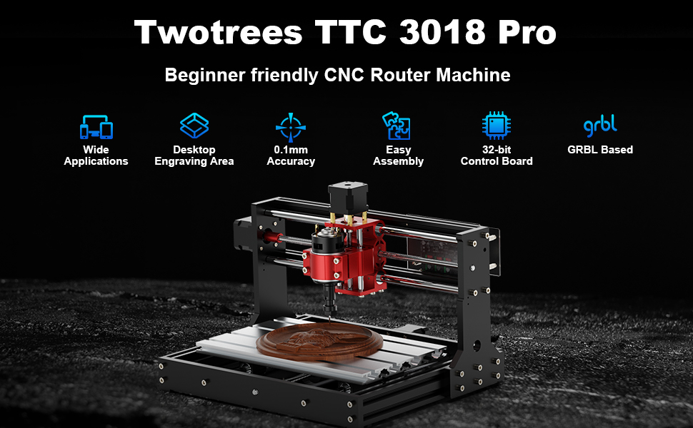 TWO TREES TTC3018 Pro tee-se-itse CNC-kaiverruskone 300x180x40 mm aloittelijaystävällinen