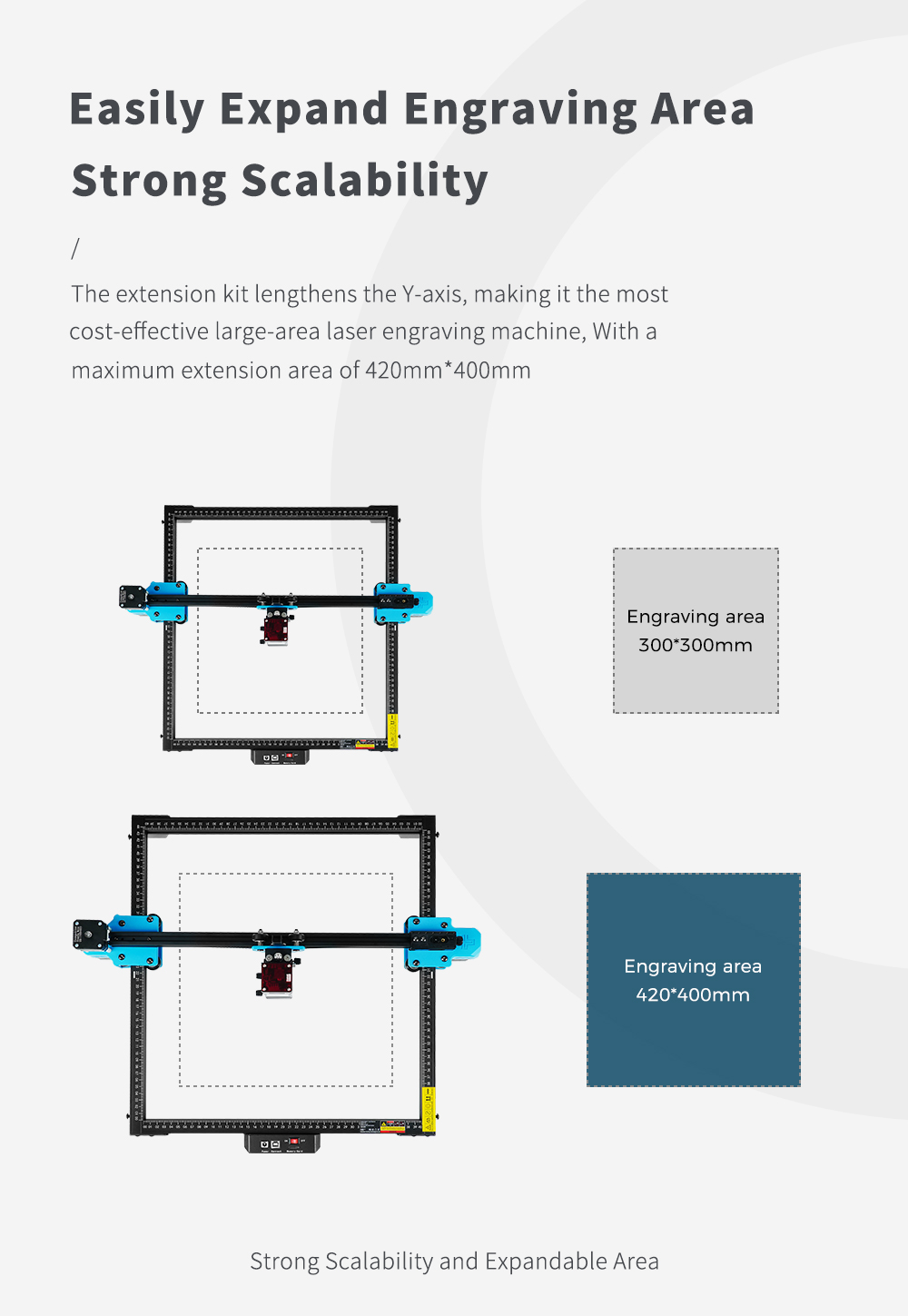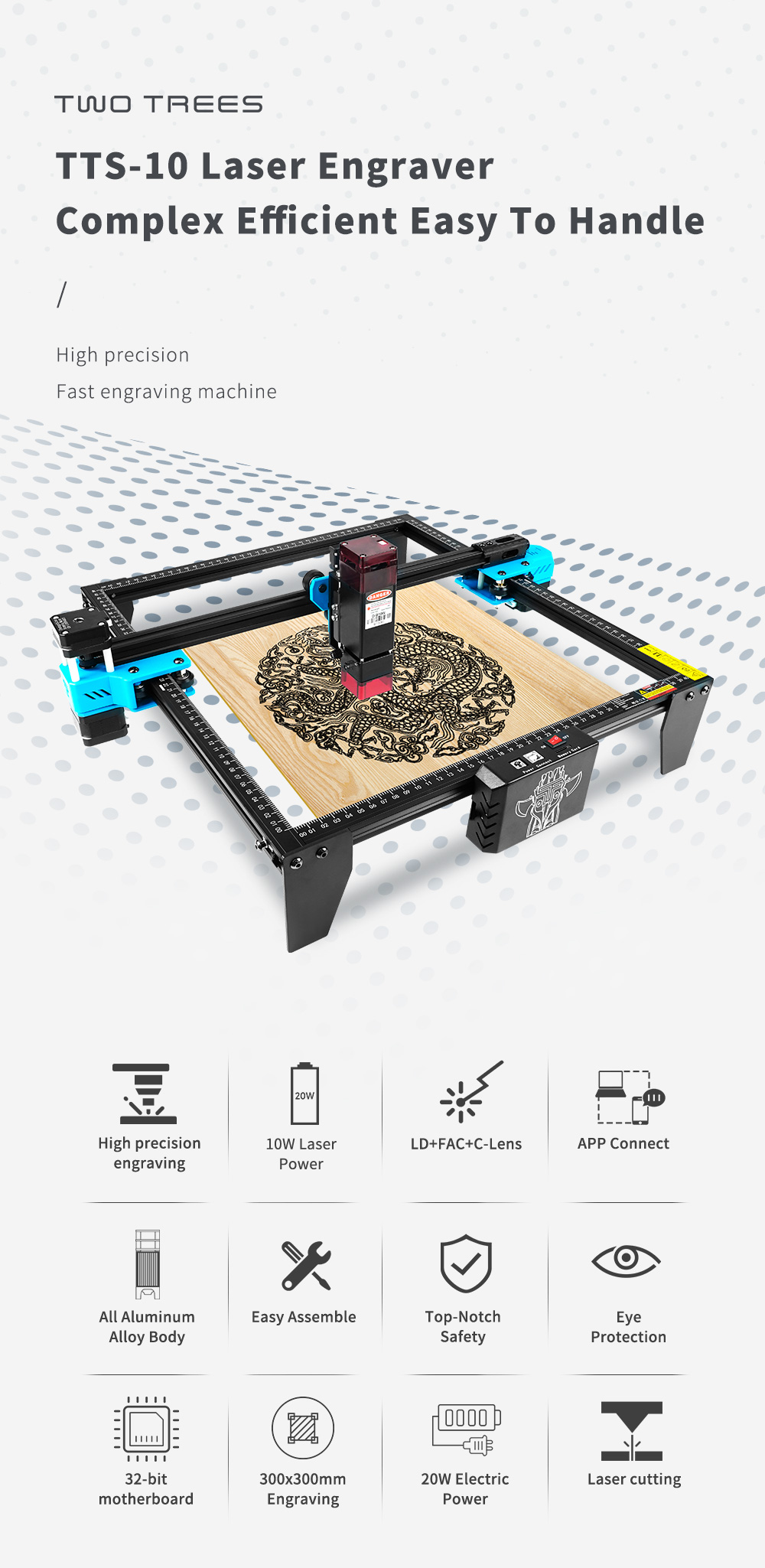 TWO TREES TTS-10 Pro 10W laserkaiverrin 300x300mm 3,5 tuuman kosketusnäyttö 150mm jalkatolpat sovellusyhteys kaukosäädin