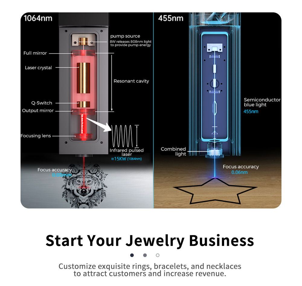 - Kaiverrus useimmille metalleille: xTool 1064nm infrapunainen laser-moduuli on suunniteltu jalometallien ja muiden metallien merkintään, kuten kulta, hopea, platina, kupari, alumiini, sinkki, titaani, rauta, ruostumaton teräs, metallioksidit ja seokset.