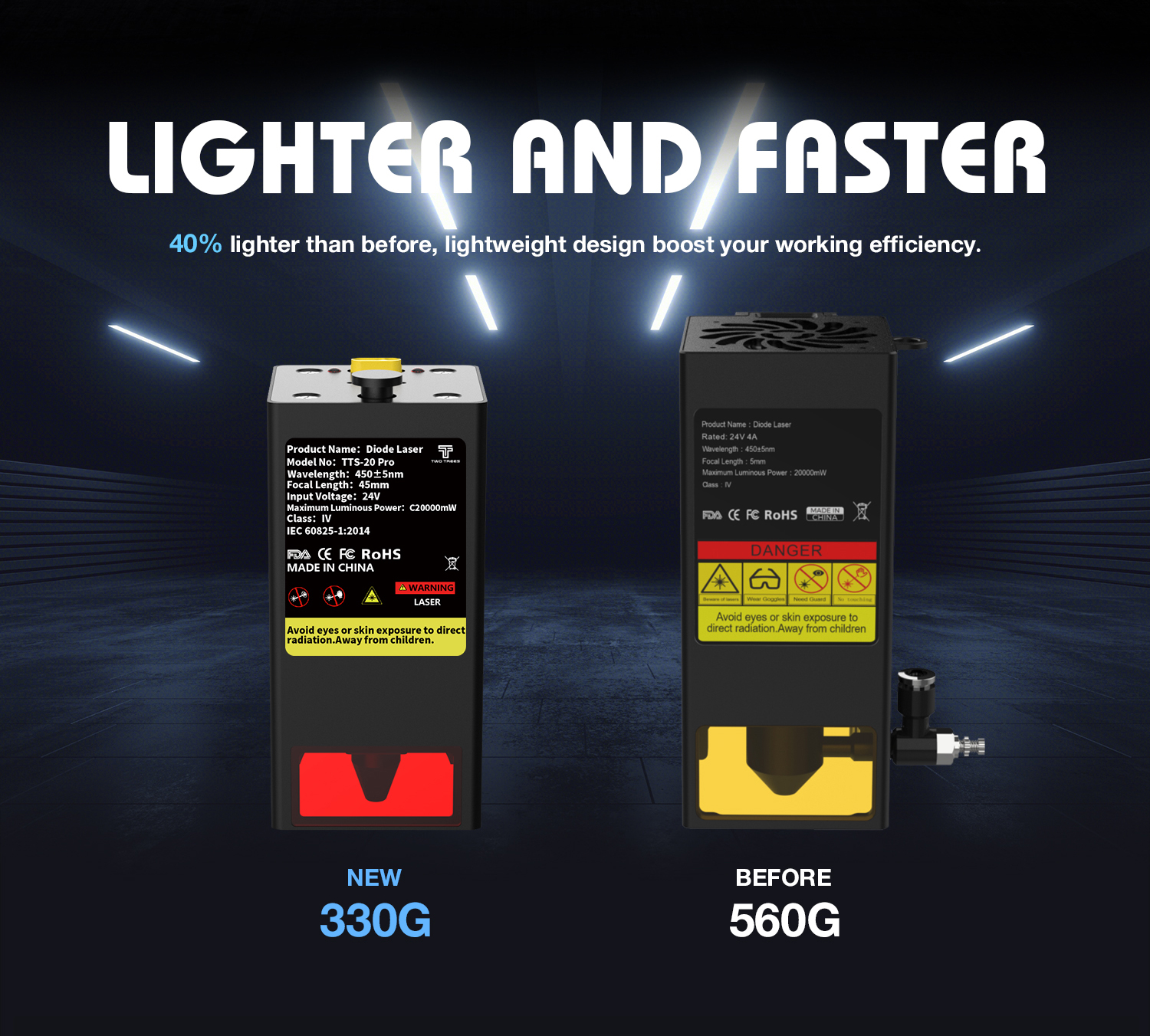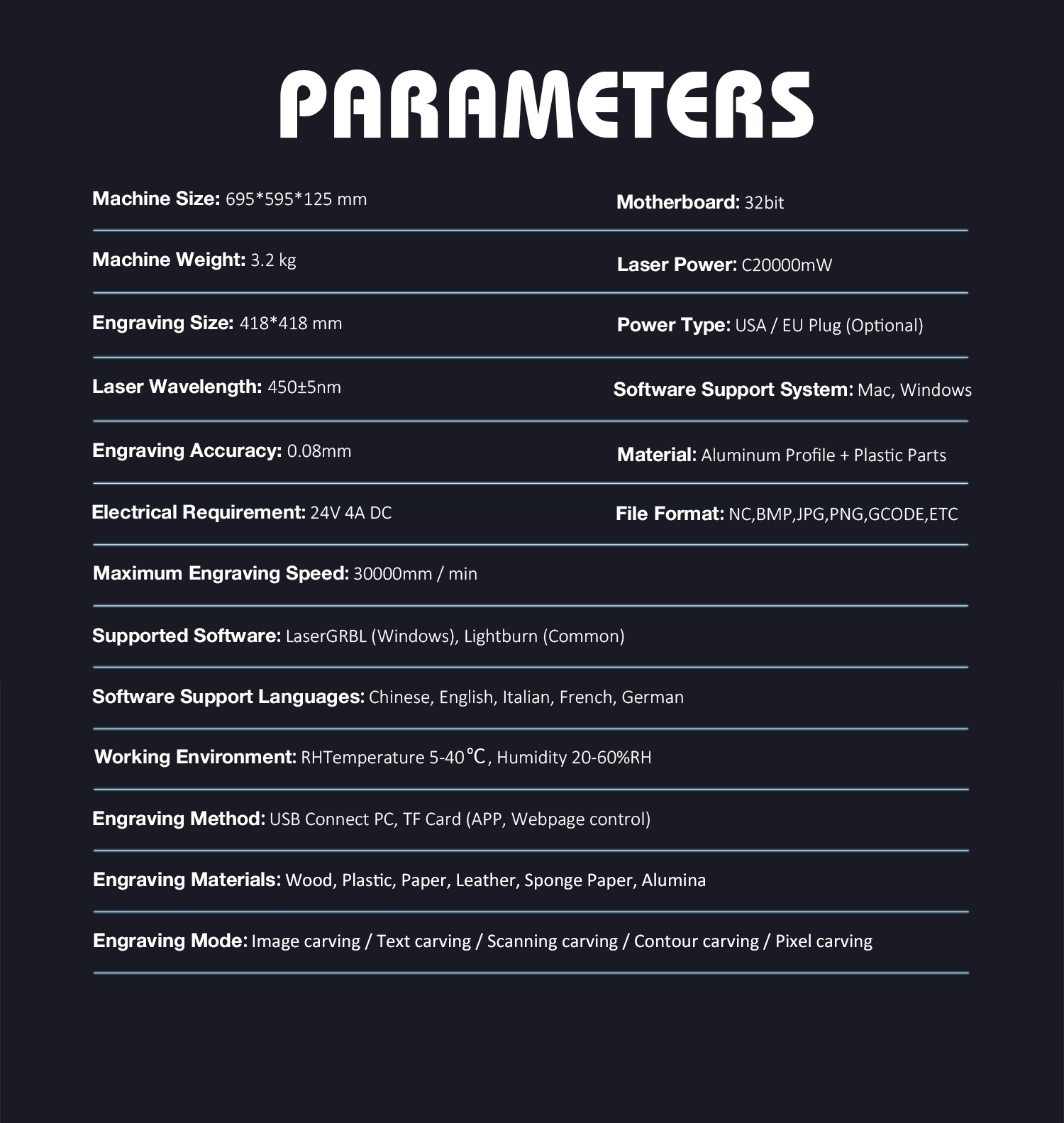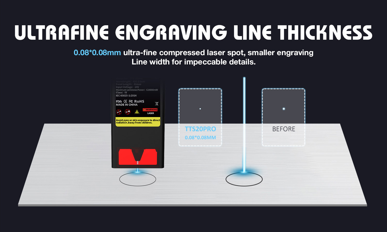 3. Lasermoduuli: COS-sirupäivitys parantaa lämmönjohtumista ja jäähdytystä. Keveämpi laserpää ja Y-akselin kaksoismoottori tuovat suuremman kaiverrusnopeuden, jopa 30000 mm/min (500 mm/s), mikä tehostaa työnkulkua.