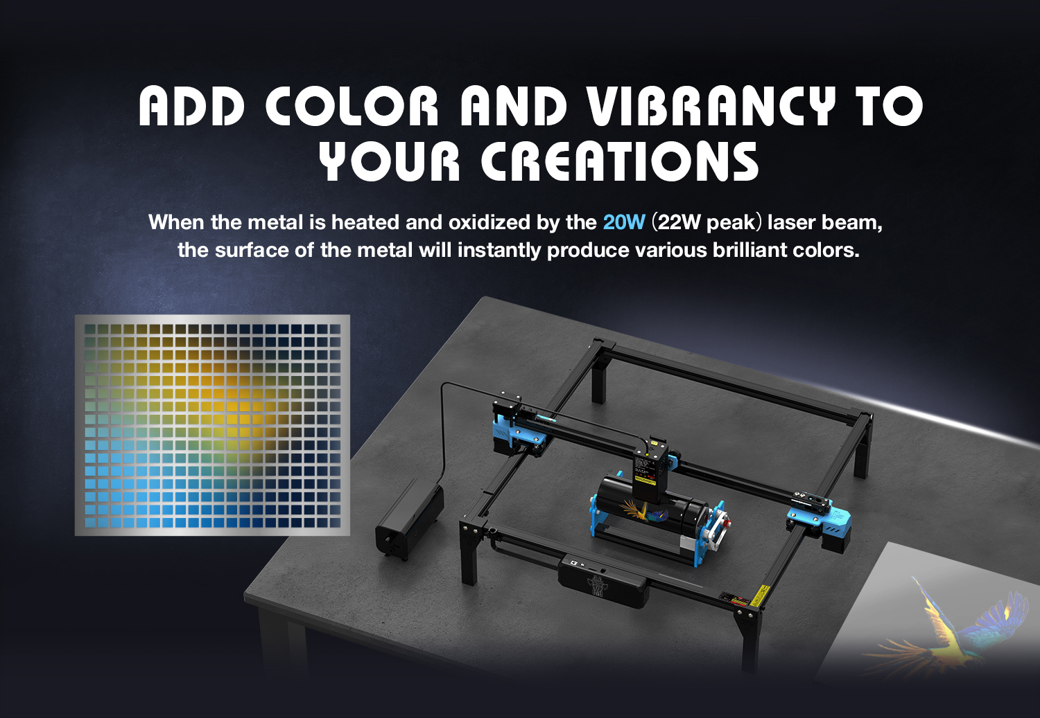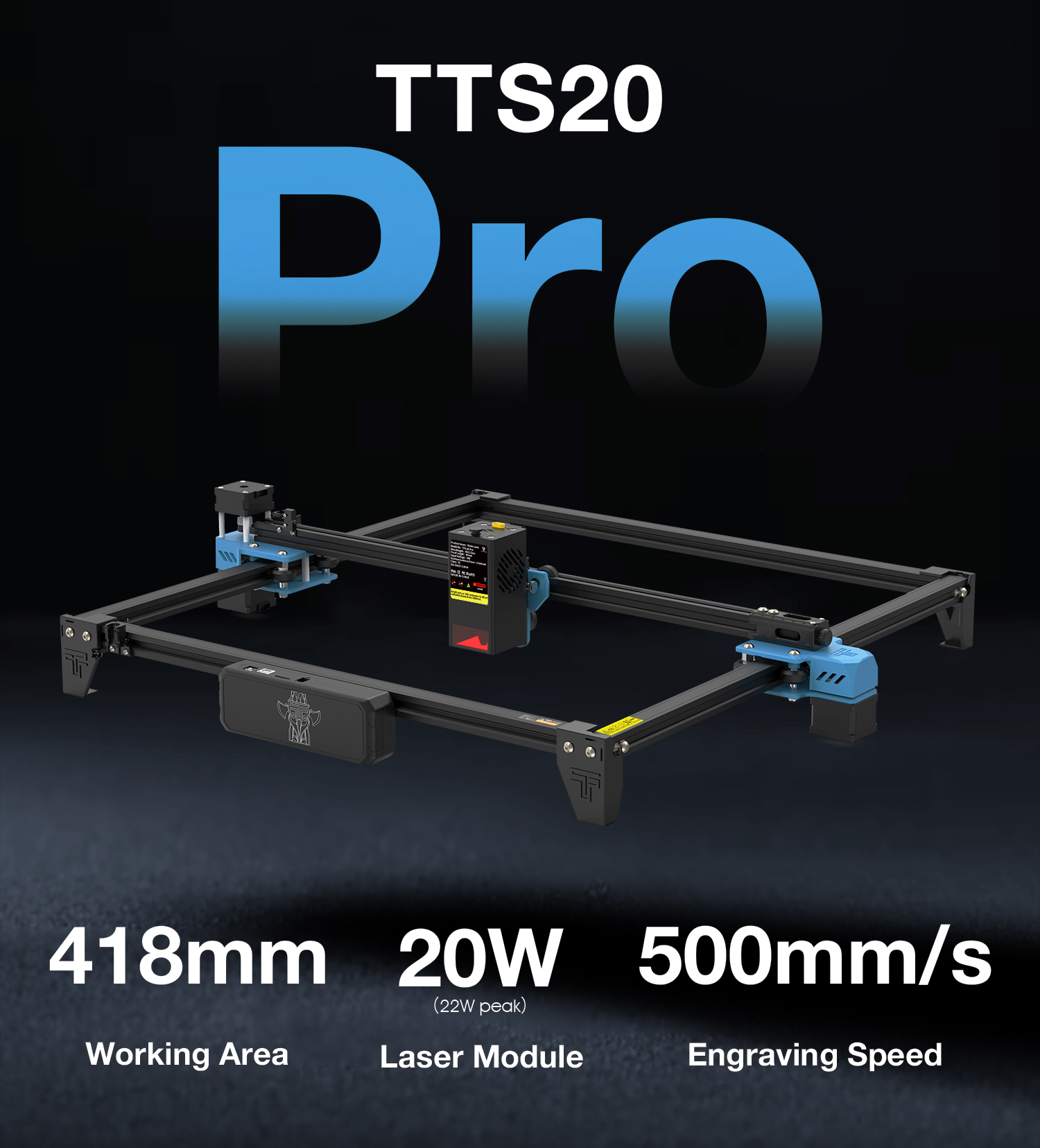 TwoTrees TTS-20 Pro 20W tehokas CNC laserkaiverruskone 418x418 mm offline-tuki