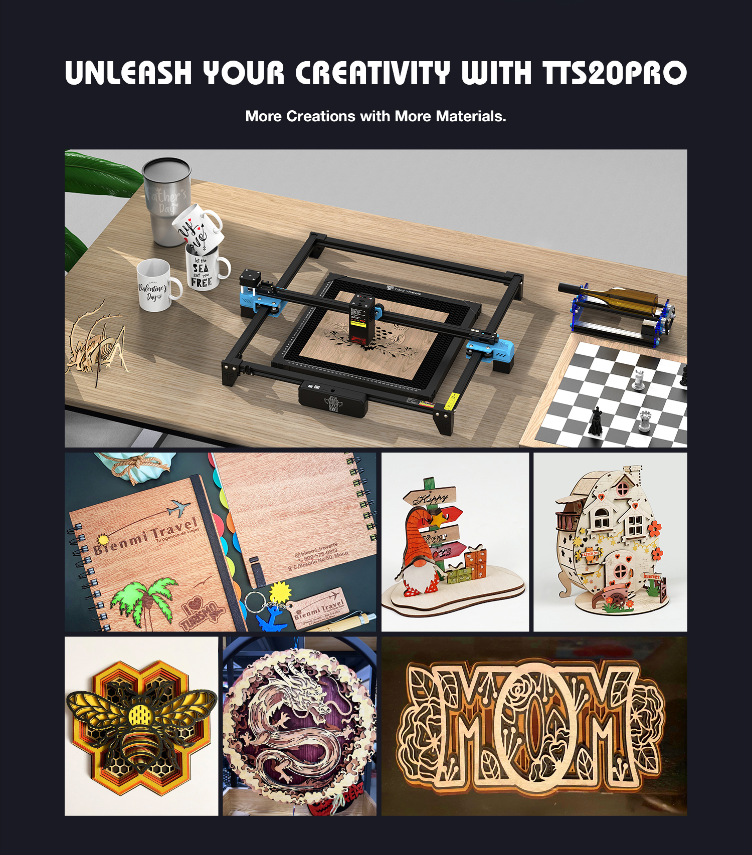 TWOTREES TTS-10 PRO 10W laserkaiverrin päivitetty totem s 300x300 mm app-yhteys kaukosäädin