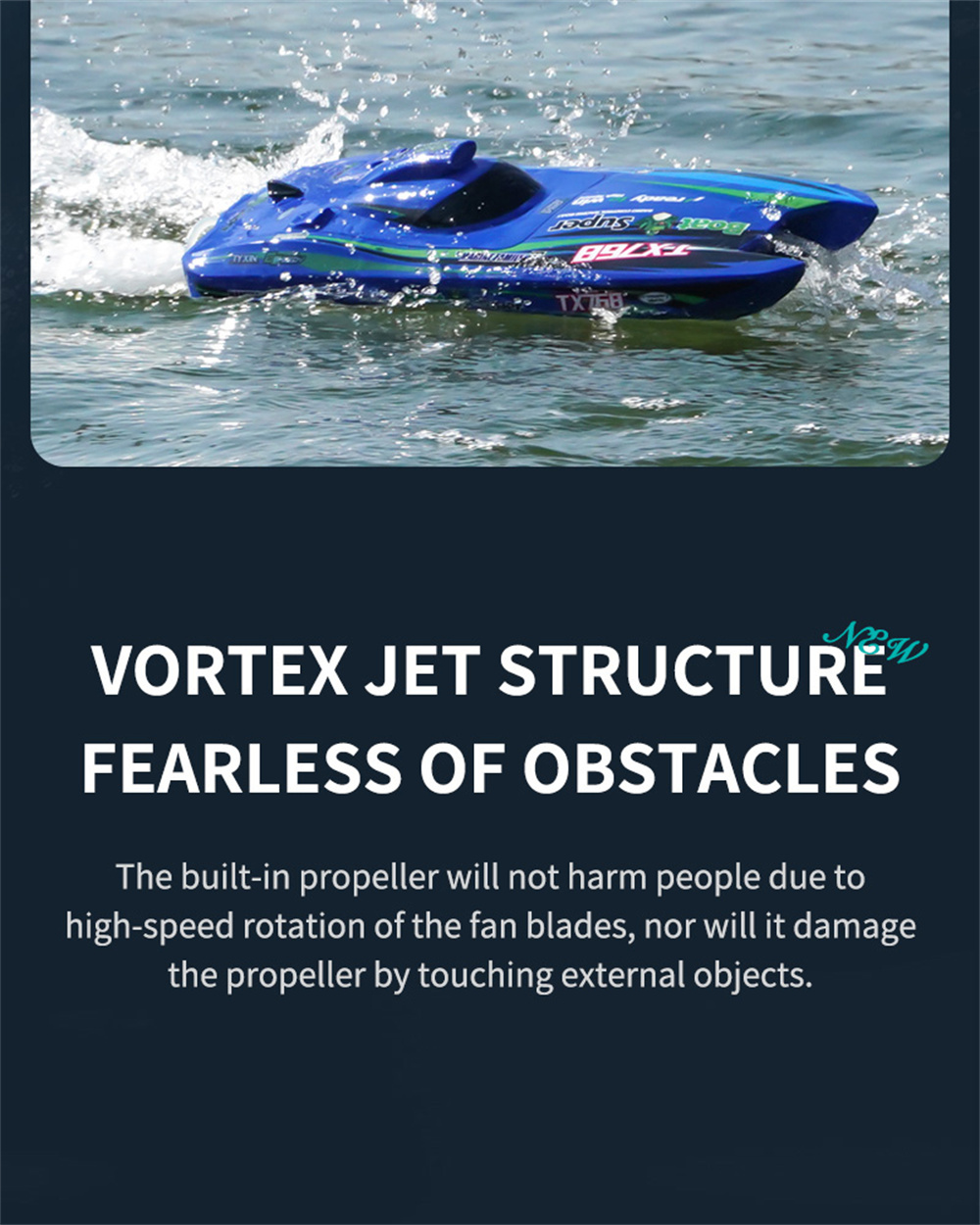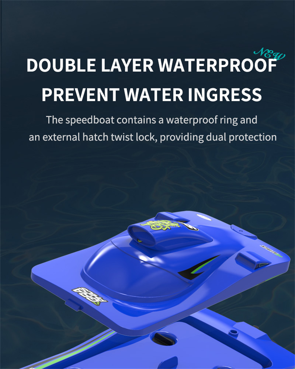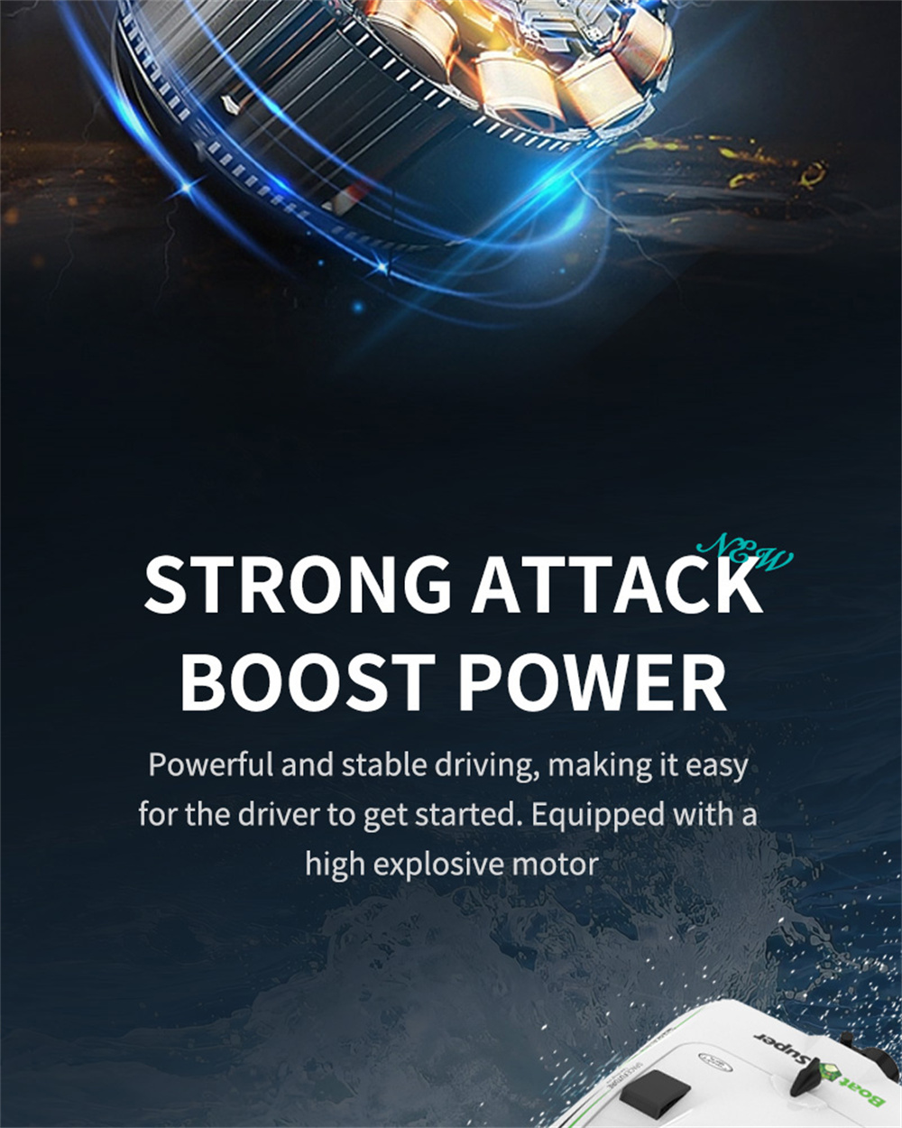 2.4G-taajuinen kauko-ohjain, pitkä ohjausetäisyys, mahdollistaa usean veneen samanaikaisen ajon ilman häiriöitä.