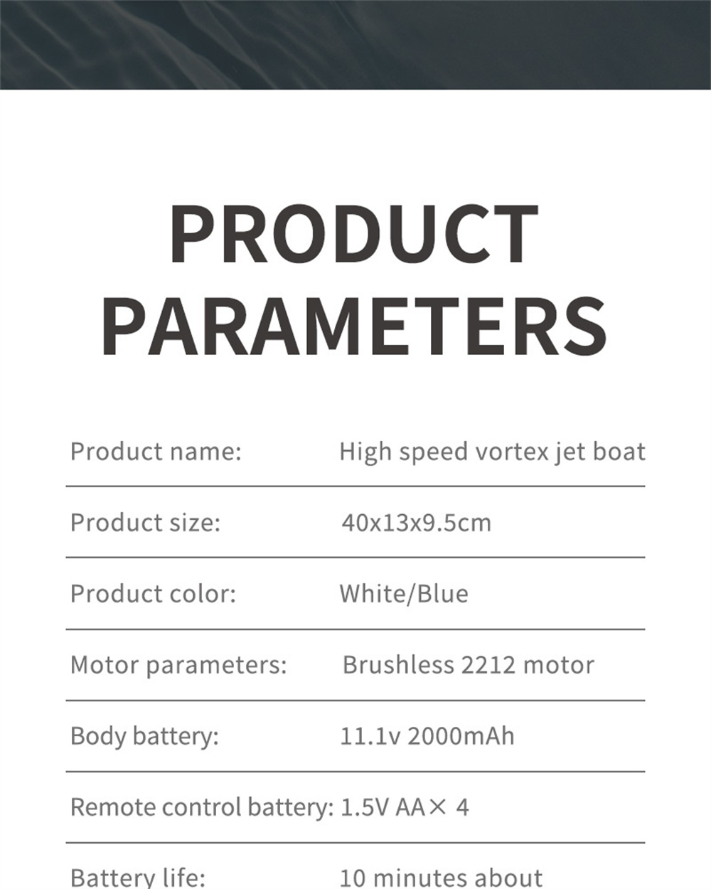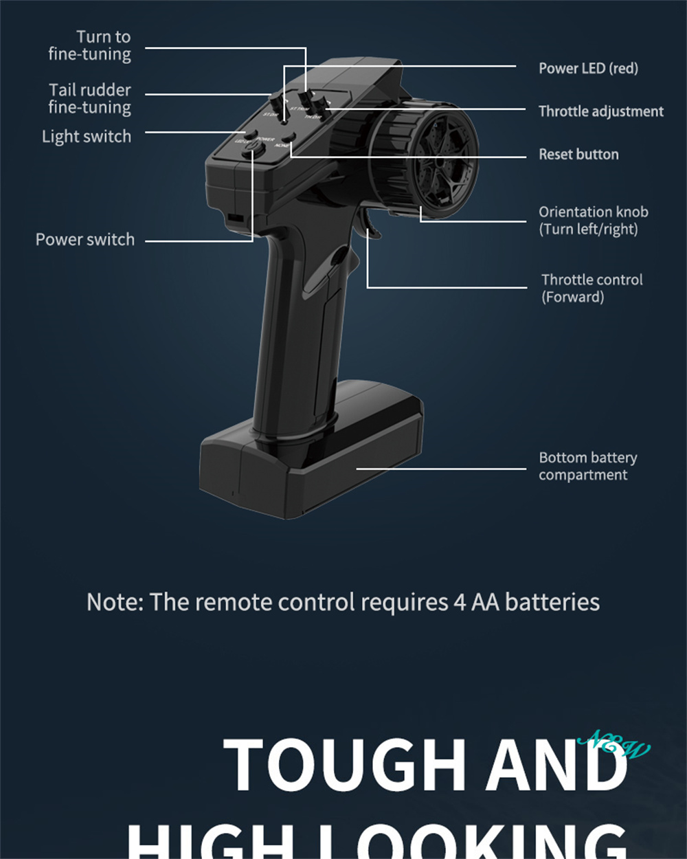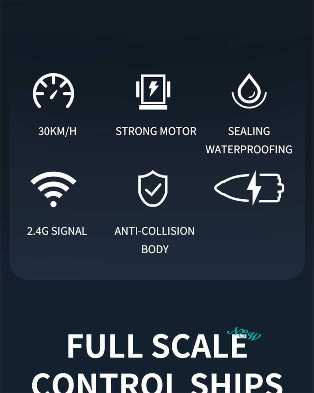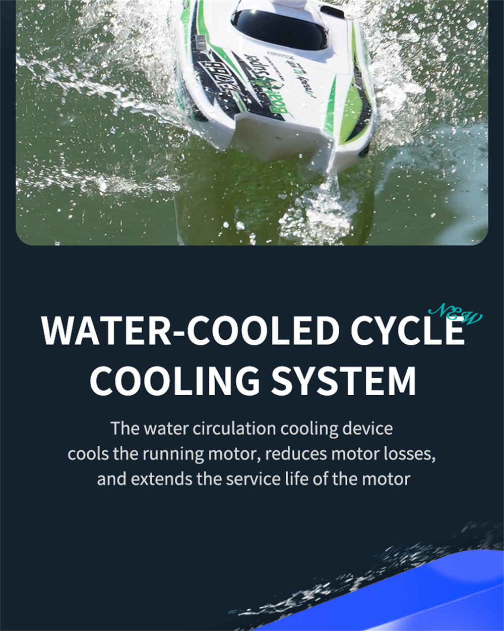2.4G-taajuinen kauko-ohjain, pitkä ohjausetäisyys, mahdollistaa usean veneen samanaikaisen ajon ilman häiriöitä.