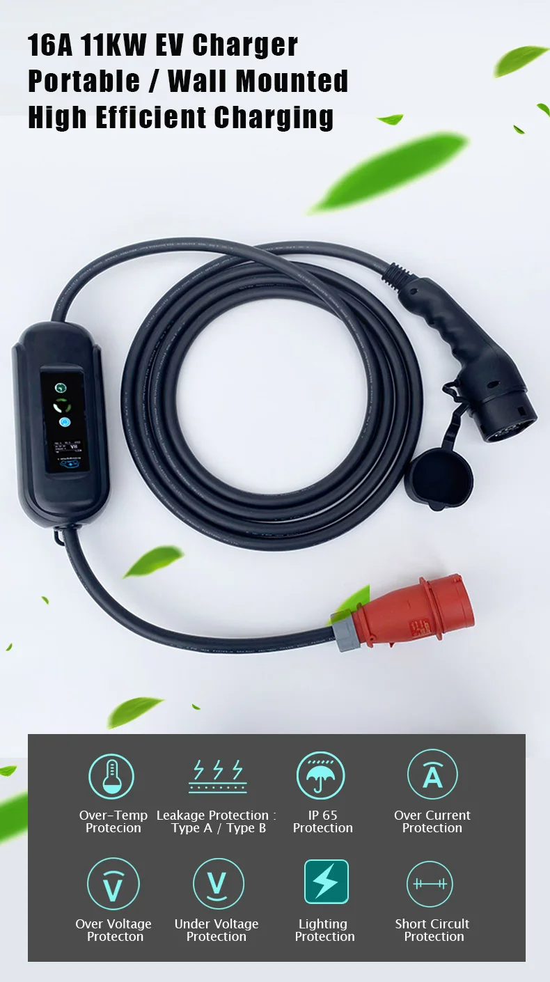 Tyyppi 2 16A kannettava 3-vaiheinen sähköauton 11 kW pikalaturi CEE5EE1635