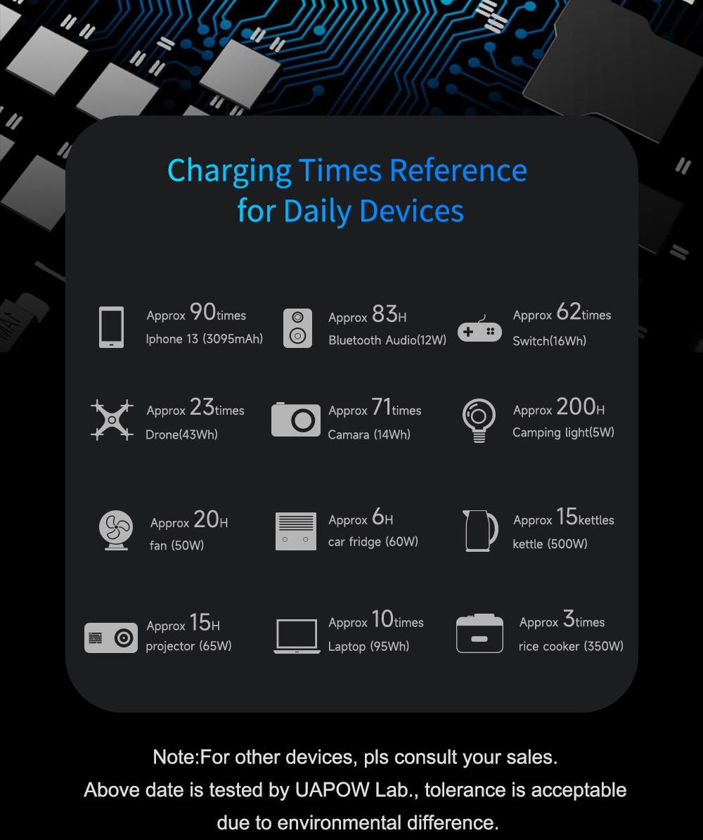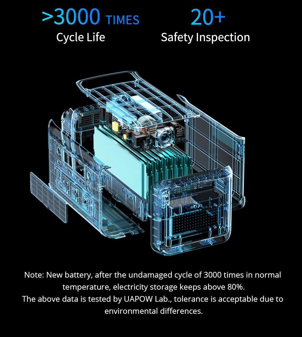 UAPOW APOWER1000 on monipuolinen kannettava virtalähde kotiin, mökille ja liikkeellä oloon. Autoteollisuusluokan litiumrautafosfaattiakku (LiFePO4) tarjoaa pitkän käyttöiän ja turvallisen käytön. Useat lähtöportit (AC, DC, Type‑C ja USB) mahdollistavat samanaikaisen latauksen useille laitteille. Lataus onnistuu verkkovirralla, autolaturilla tai aurinkopaneelilla.