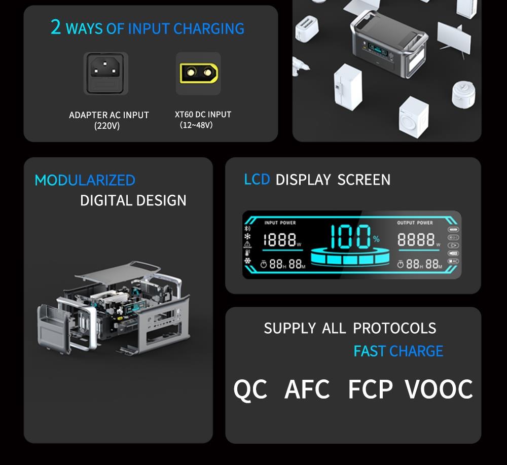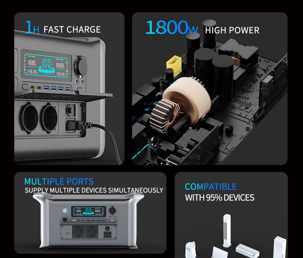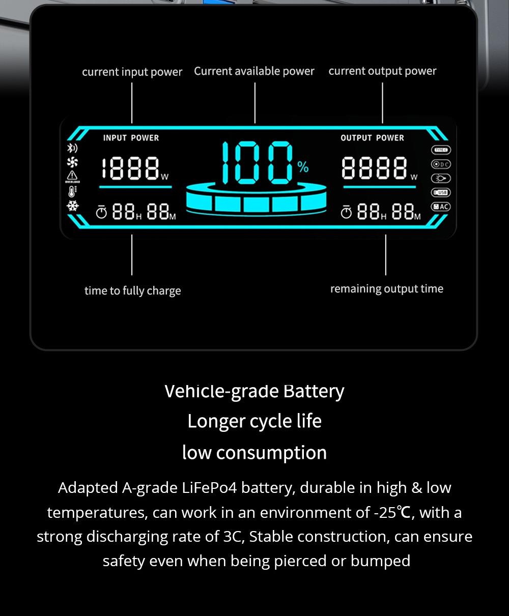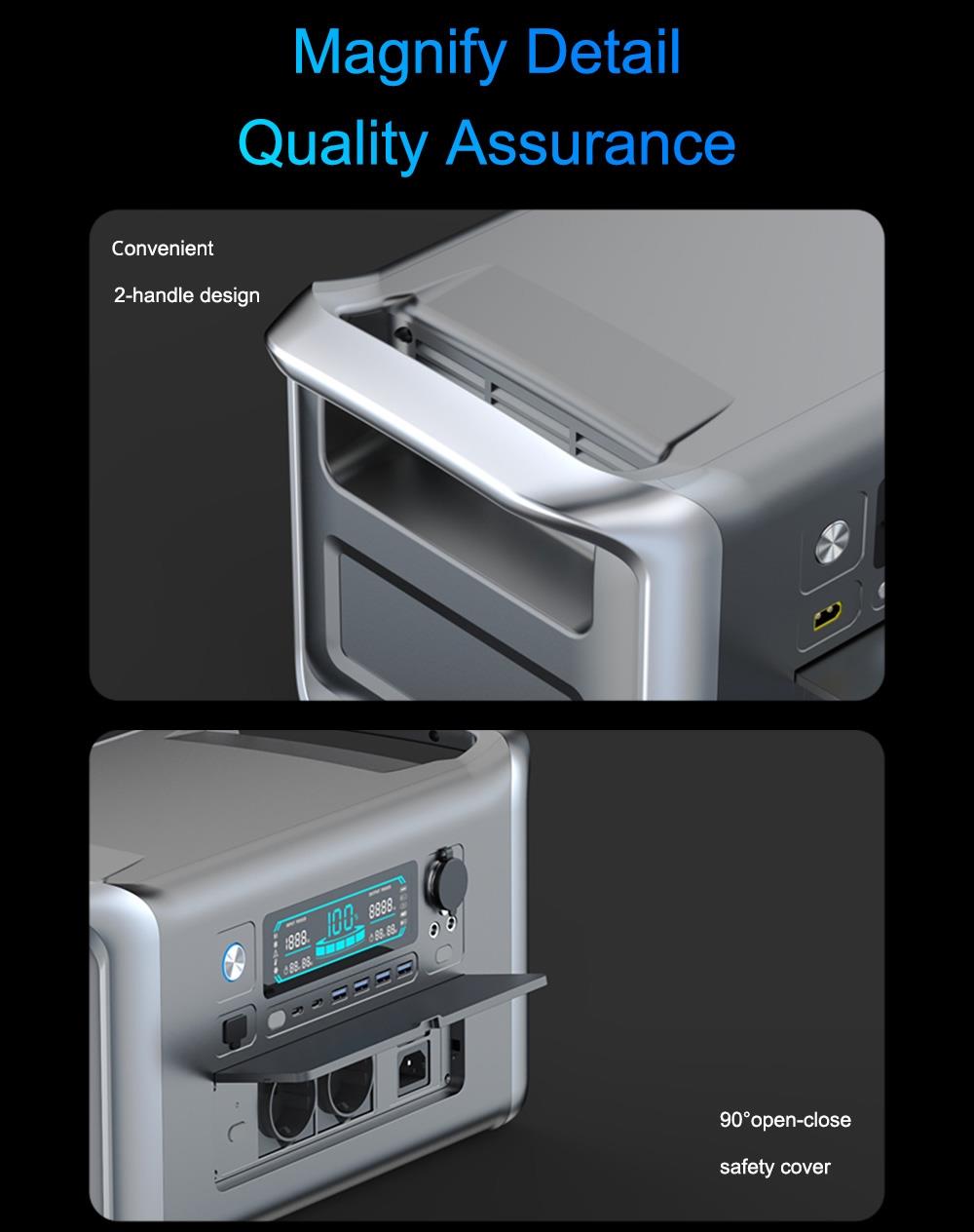 1. Monipuoliset lähdöt: AC, DC, Type‑C ja USB kattavat laajan laitekirjon.2. Luotettava akku: autoteollisuusluokan litiumrautafosfaattiakku pitkällä käyttöiällä.