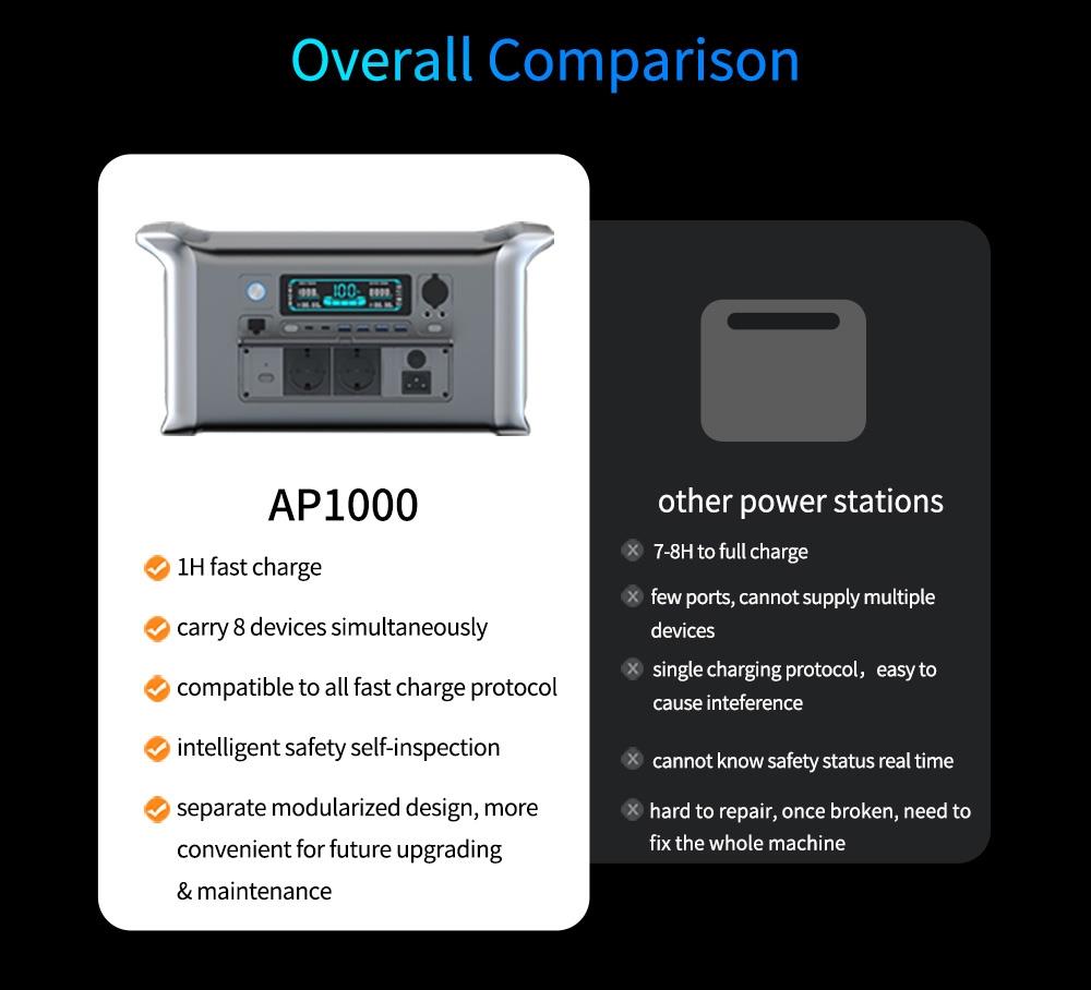 UAPOW APOWER1000 kannettava aurinkogeneraattori 1024Wh litiumrautafosfaattiakku 1800W vaihtovirta PD-portti 100W