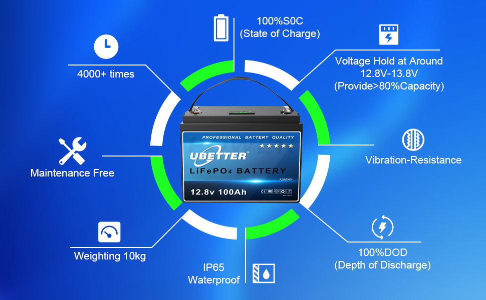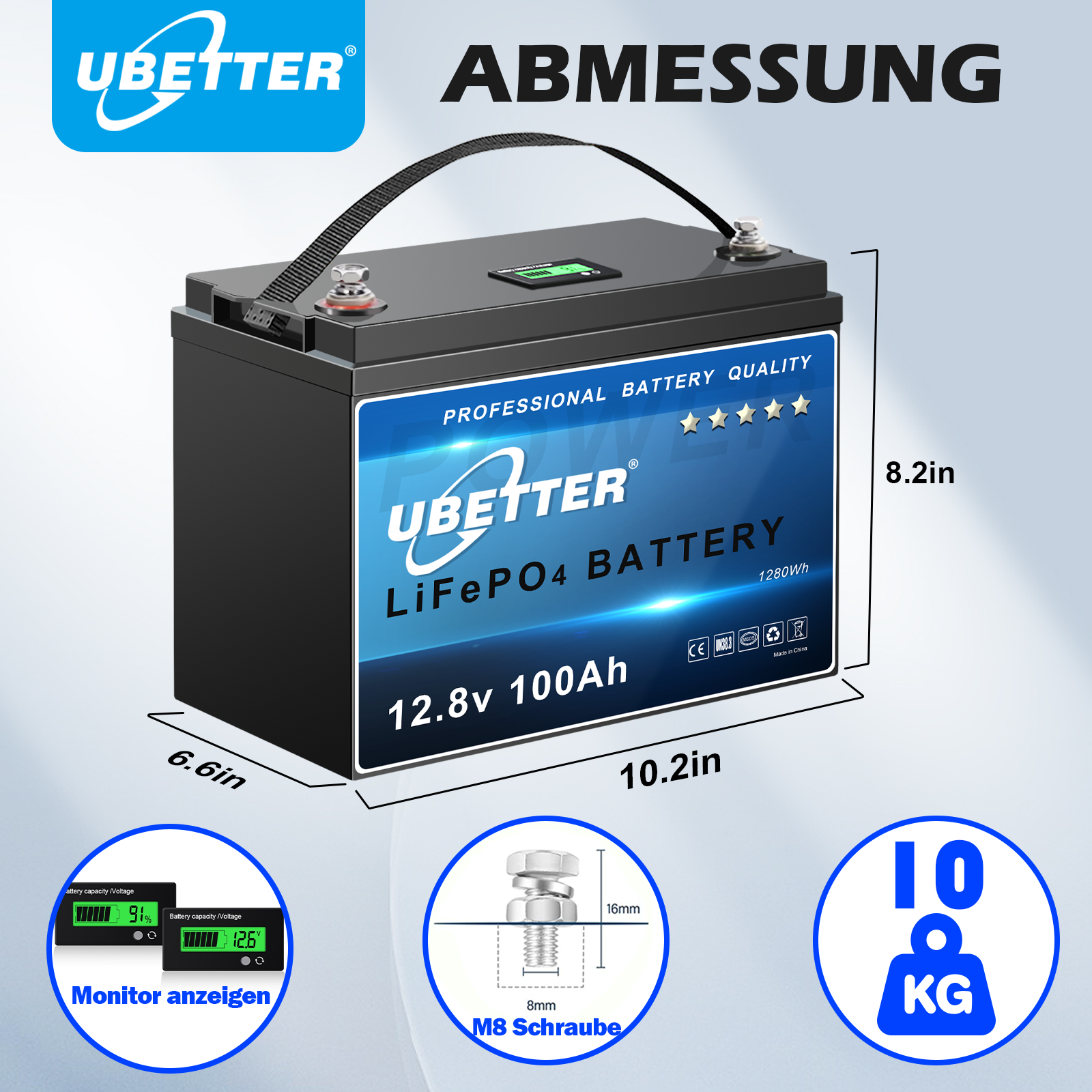 UBETTER LiFePO4 100Ah kompakti 12,8V litiumakku 100A BMS matkailuautoon