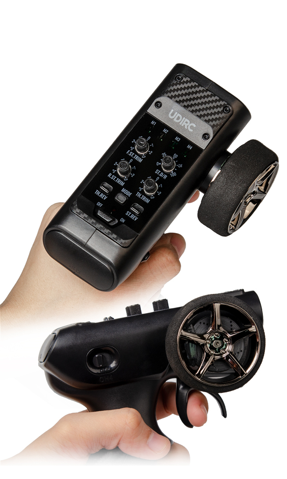 - Kauko-ohjattava kaksinopeuksinen vaihdelaatikko ja nelinpyöräohjaus (harjaton versio).