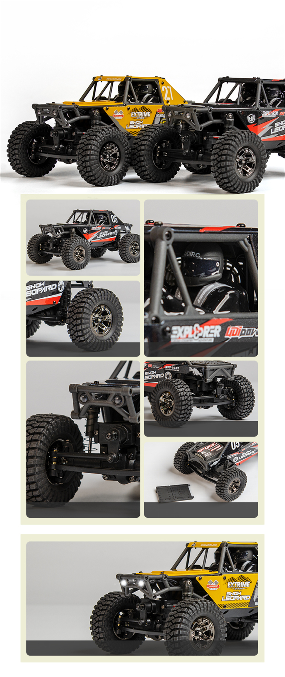 UDIRC UCX2405 UCX2405 PRO valmis ajoon 1/24 etäohjattava nelivetoinen kalliokiipeilijä led-valoilla