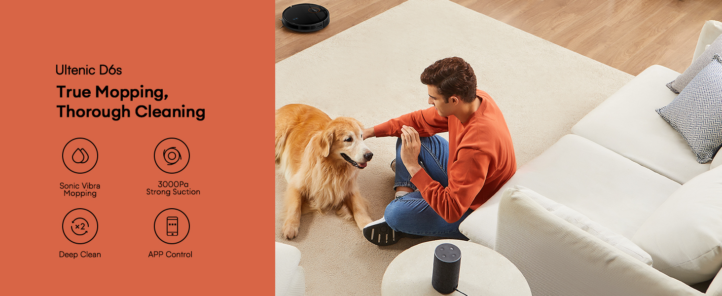 Ultenic D6s robotti-imuri ja moppaus SonicTrue värähtely 3000Pa superohut sovellusohjaus