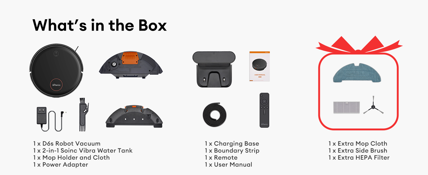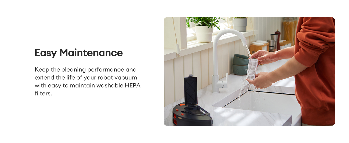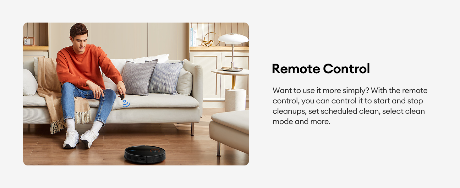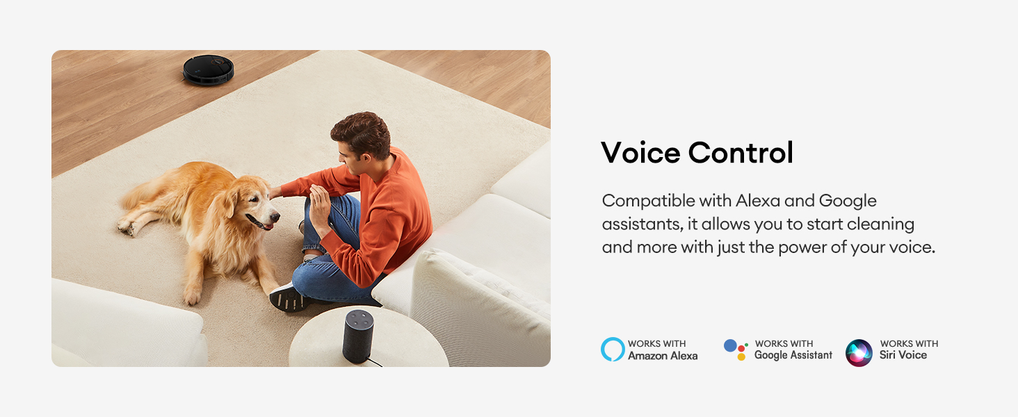 - Toimii Alexa- ja Google Assistant -palveluiden kanssa: käynnistä siivous äänikomennoilla. Mukana tulevalla kaukosäätimellä voit käyttää useimmin tarvittavia toimintoja.