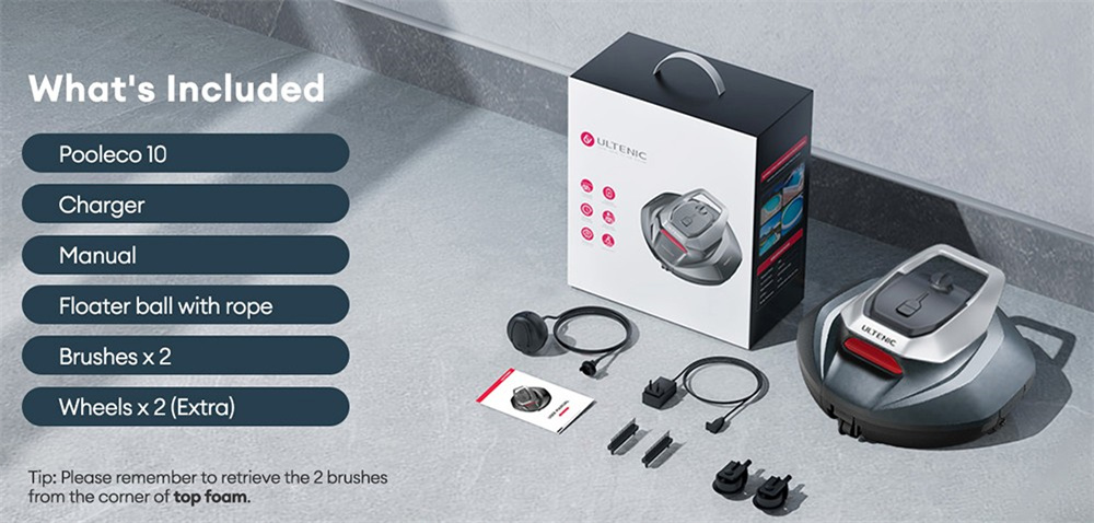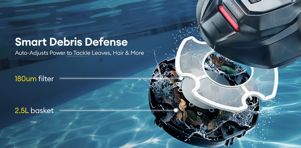 Ultenic Pooleco 10 on langaton robottialtaanpuhdistin, joka kerää lehdet, hiekan ja muun roskan altaan pohjalta yhdellä painalluksella. Kaksimoottorinen järjestelmä tuottaa tehokkaan imuvoiman, automaattinen rantautuminen helpottaa nostoa, ja pestävä yläkautta avattava suodatin tekee huollosta vaivatonta. Sopii sekä maanpäällisiin että upotettuihin altaisiin ja eri allasmuodoille ja -pinnoille.