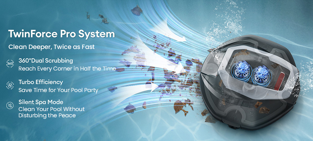 1. Älykäs automatiikka yhdellä painalluksella – Käynnistä puhdistus kääntämällä säädintä. Kaksi suurta imua ja pohjaharja keräävät lehdet, lian ja hiekan ilman käsinskrubausta. Sopii sekä maanpäällisiin että upotettuihin altaisiin.