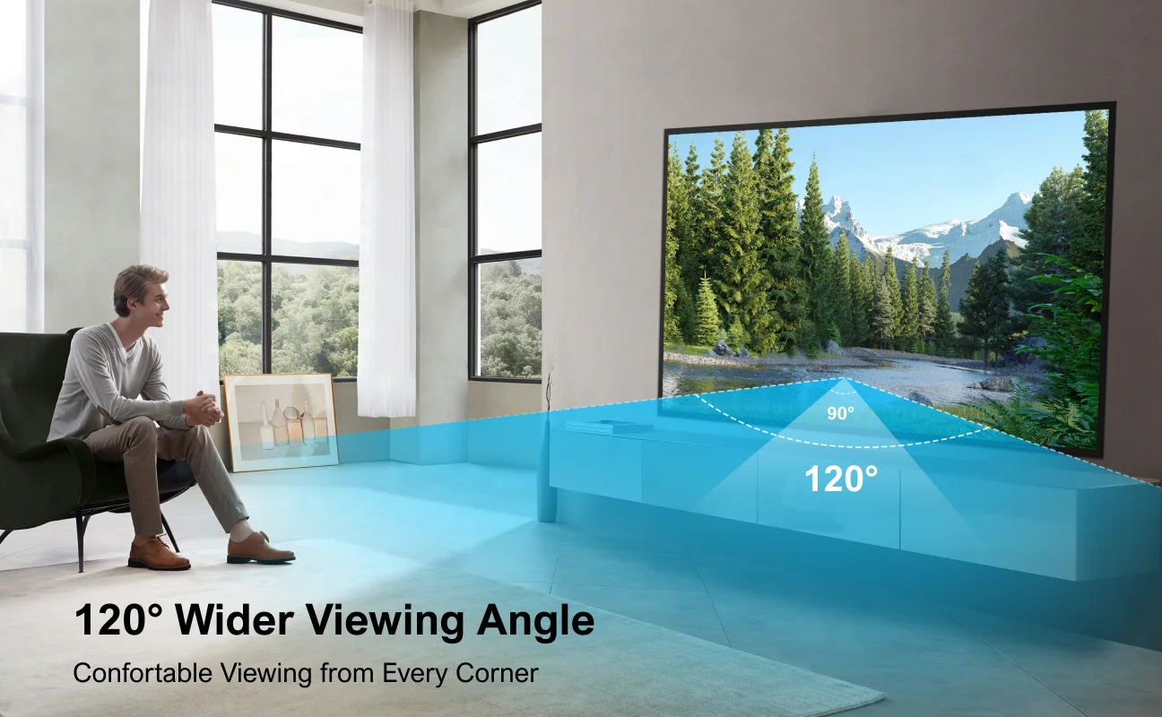 5. 120° katselukulma: Miellyttävä katselukokemus eri puolilta huonetta laajan 120° katselukulman ansiosta.