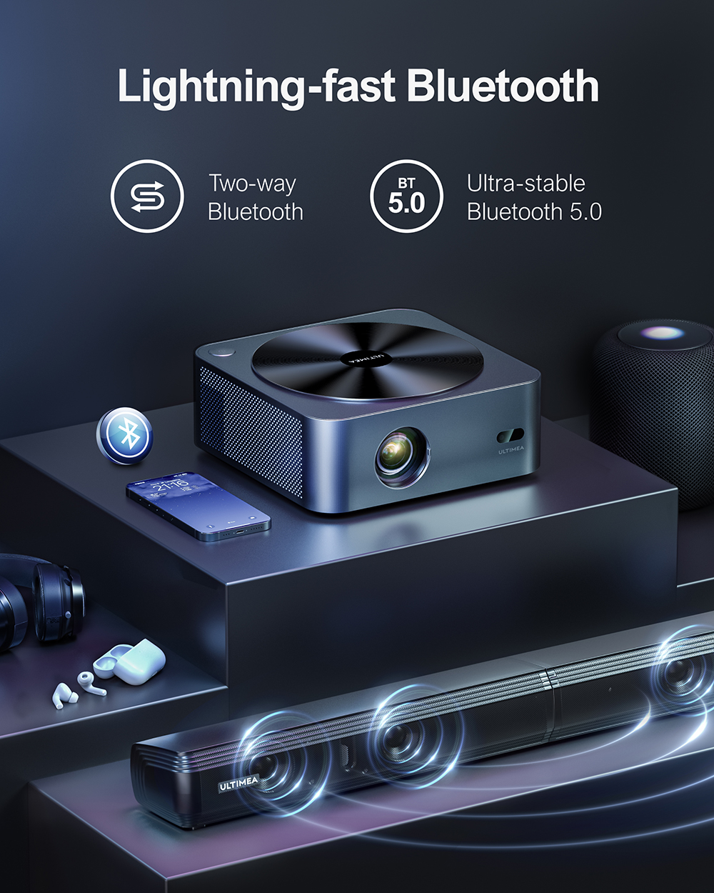 Ultimea Apollo P40 4K-tuki projektori 700 ANSI-lumenia 1080p automaattitarkennus bluetooth kaiuttimet koditeatteriin