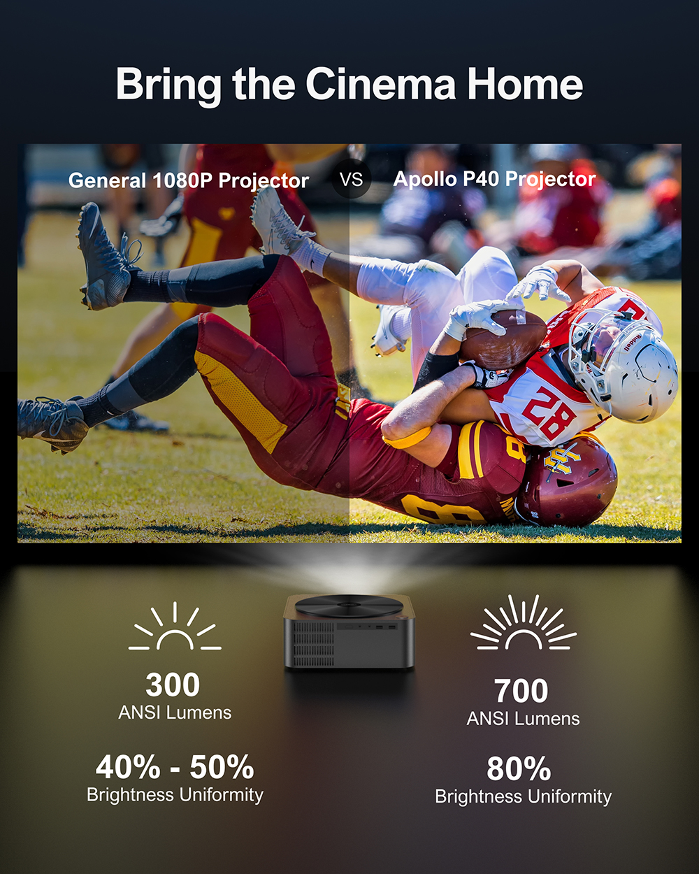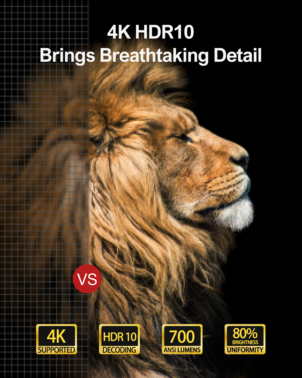 - Natiivi Full HD -kuva (1920×1080) ja 700 ANSI lumenia kirkkaaseen katseluun