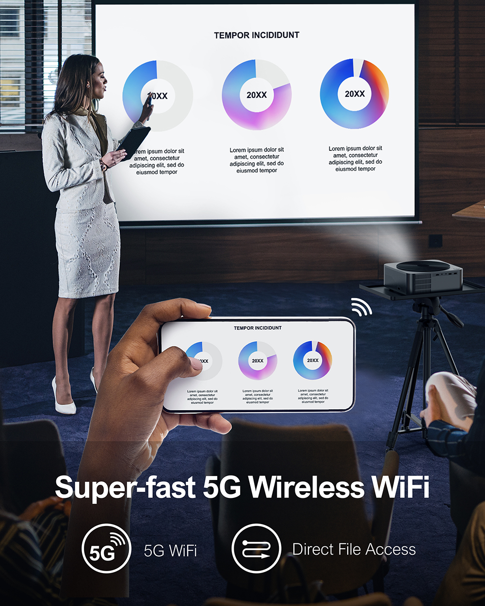 Kompakti kotiprojektori LCD-näytöllä ja LED-valonlähteellä. Terävä 1920×1080 pikselin natiivi resoluutio, 700 ANSI lumenin kirkkaus ja täysin suljettu optinen moottori tarjoavat selkeän kuvan ja huoltovapautta. Automaattitarkennus ja -trapetsikorjaus helpottavat käyttöönottoa eri tiloissa.