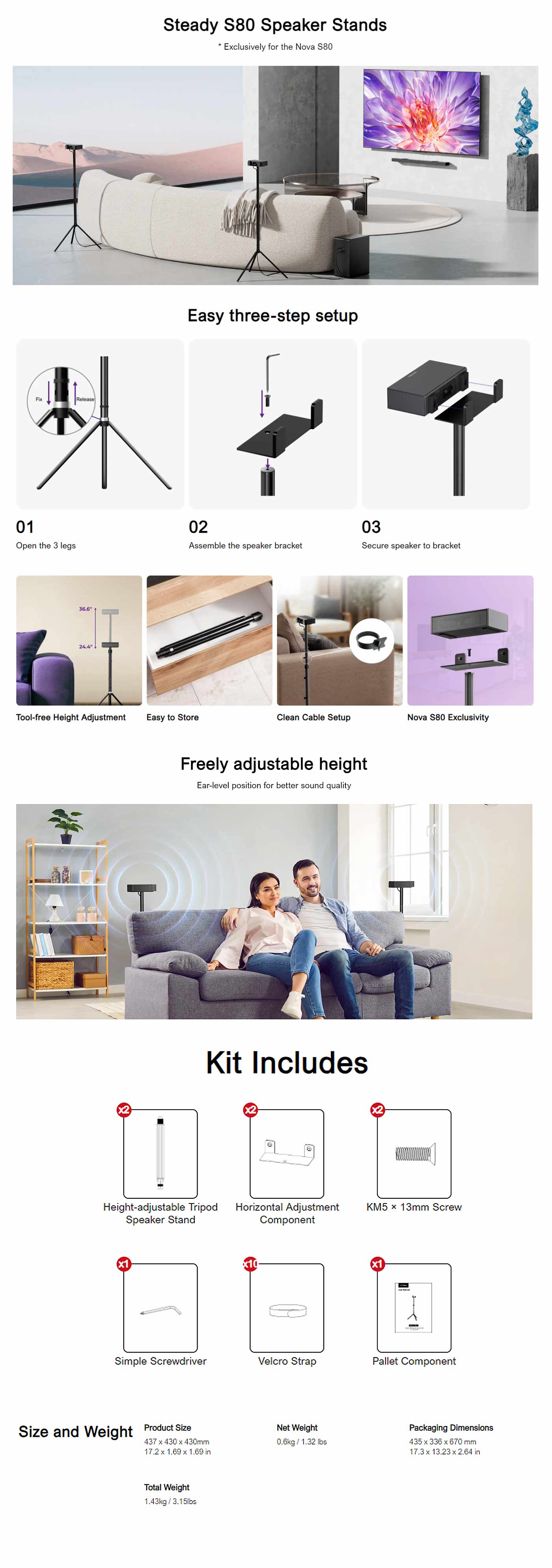 1. Yksinoikeudella Nova S80 -mallille: Räätälöity sopivuus Nova S80 Soundbar -mallille, varma tuki ja tasapainoinen ääni.