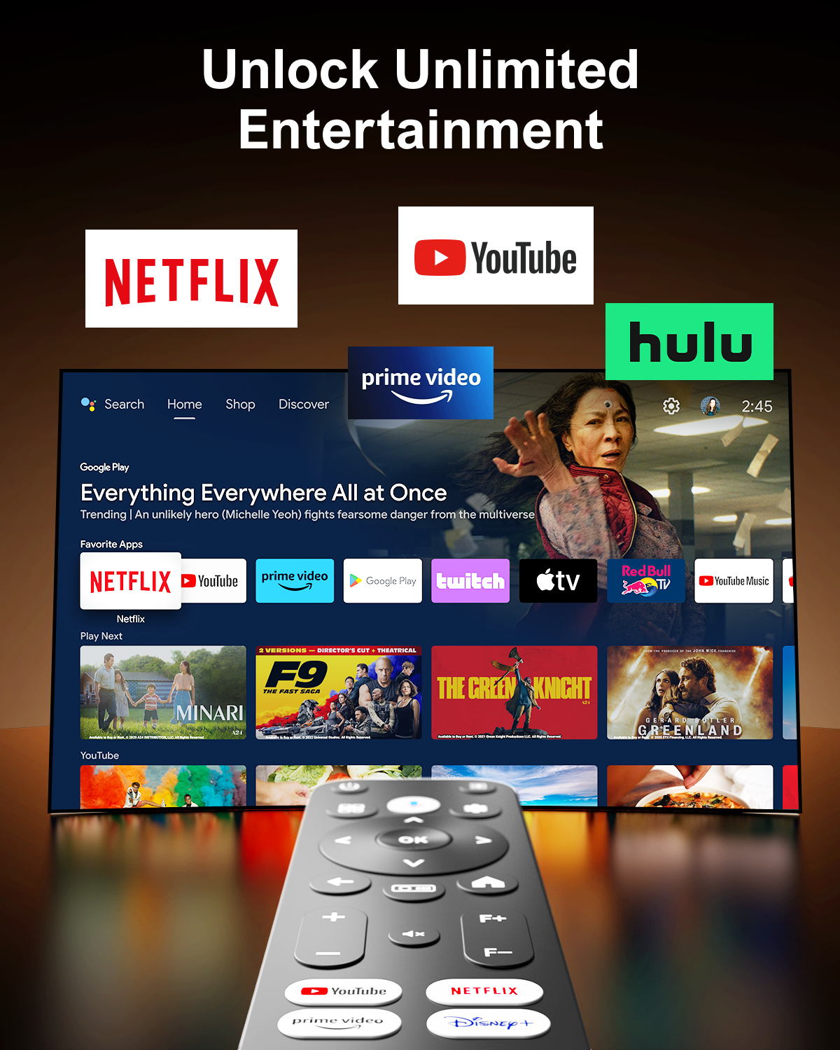 - Android TV 11.0 ja tuki yli 10 000 sovellukselle