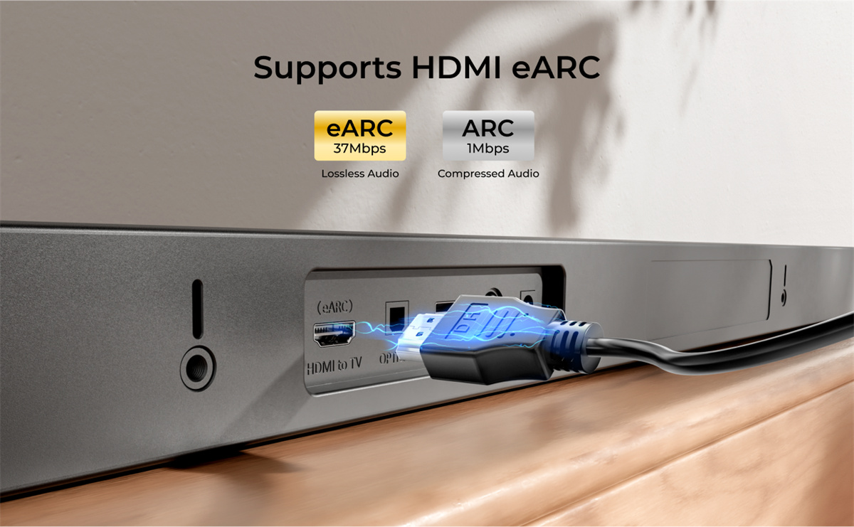 - HD eARC -liitäntä: häviötön ja saumaton äänensiirto parempaa äänenlaatua varten.
