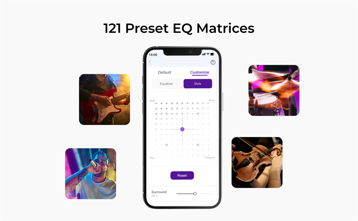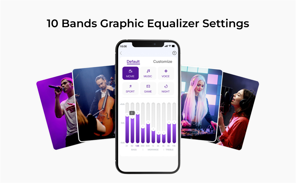 - Sovelluksella ohjaus: tilat, taajuuskorjain ja asetukset helposti muokattavissa.