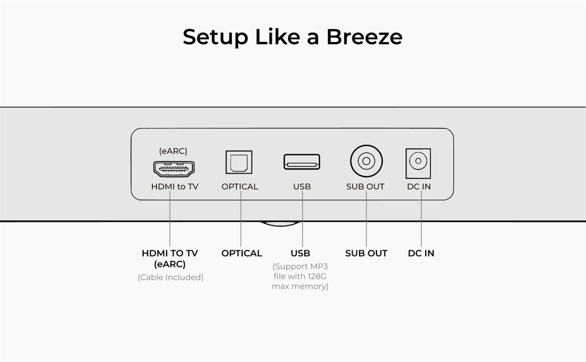 | Liitännät | eARC, optinen, Bluetooth, USB, SUB OUT, DC IN |