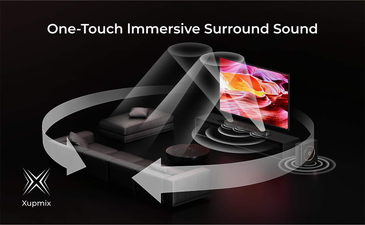 - Dolby Atmos -upotus: tarkka pystysuuntainen ääni ylöspäin suuntautuvilla elementeillä kotiteatteritunnelmaan.