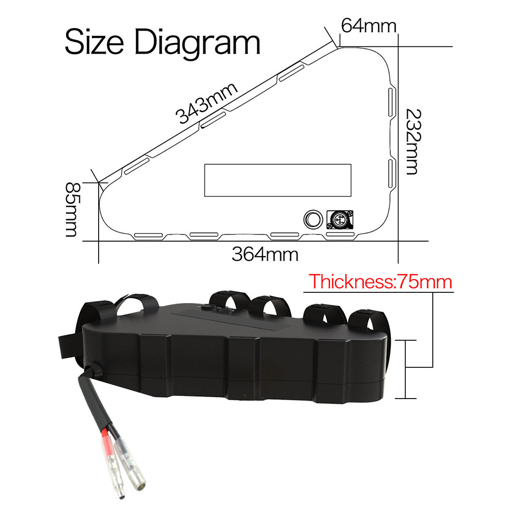 UNITPACKPOWER 36V 20Ah sähköpyörän kolmionmallinen runkoakku 720W 25A BMS 3A laturi