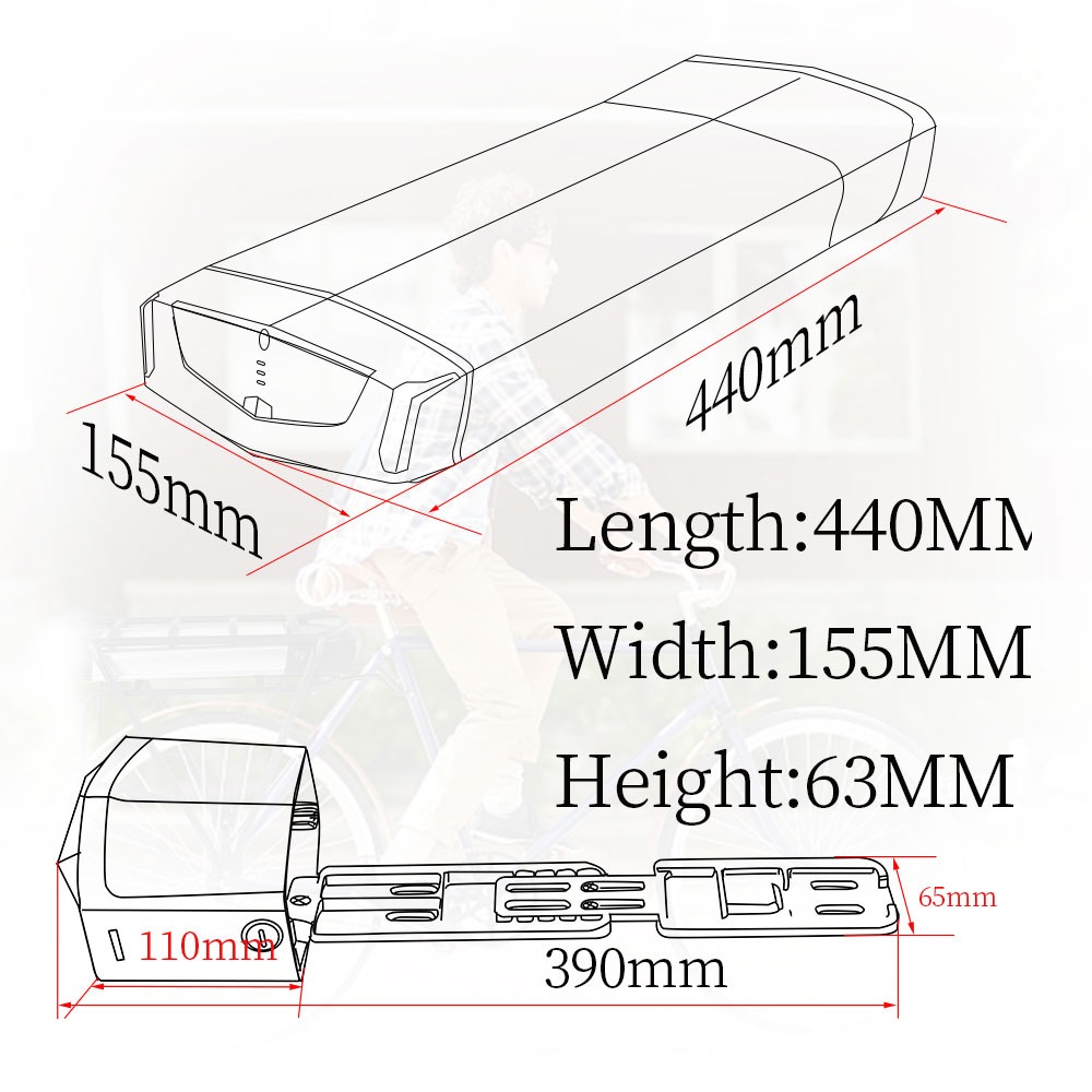 Chamrider Polly 7 52V 25Ah 1300Wh runkoakku IP65 vedenkestävä 4A laturi sopii 250–2000W moottoreille